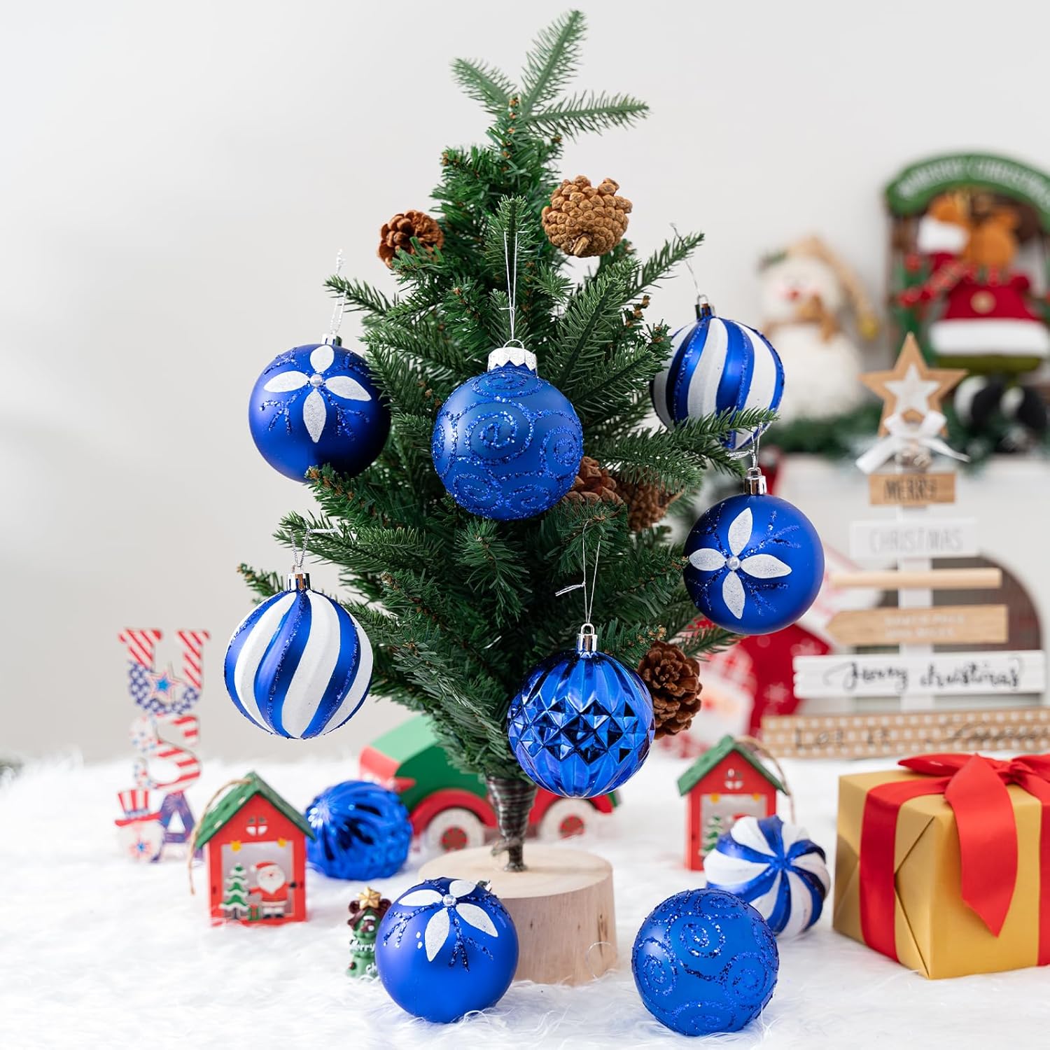 - 【EASY TO HANG】 Each christmas decoration ball and other decorations come with a removable hook with string, you can easily hang it up and add your favorite accessories to make your christmas tree more beautiful
