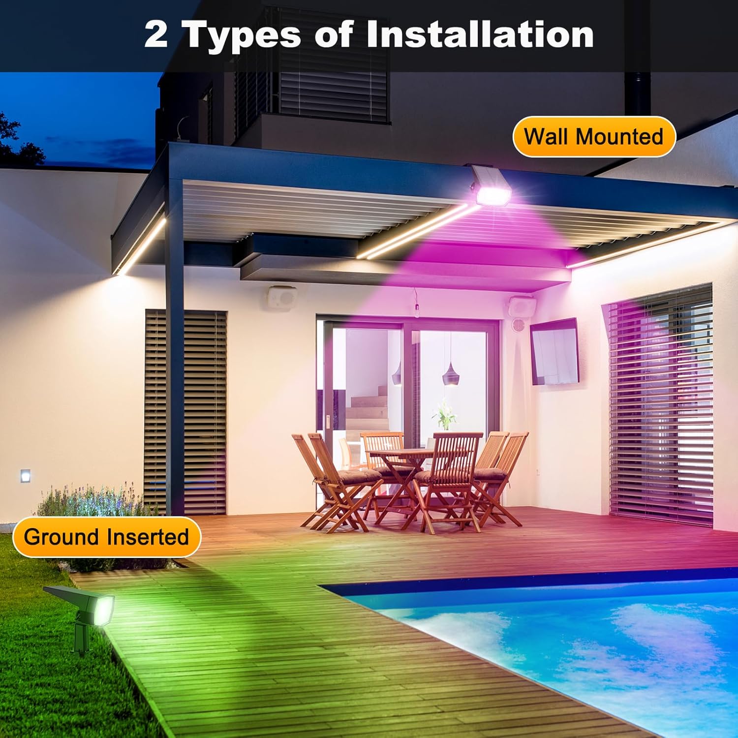 Fabrito Solar Color Changing Lights Outdoor, 9 Color Modes Landscape Spotlights, Dusk to Dawn Solar Powered Spot Lights for Outside, Solar Garden Lights for Yard, Pathway, Tree 4 Pack (Multicolor)