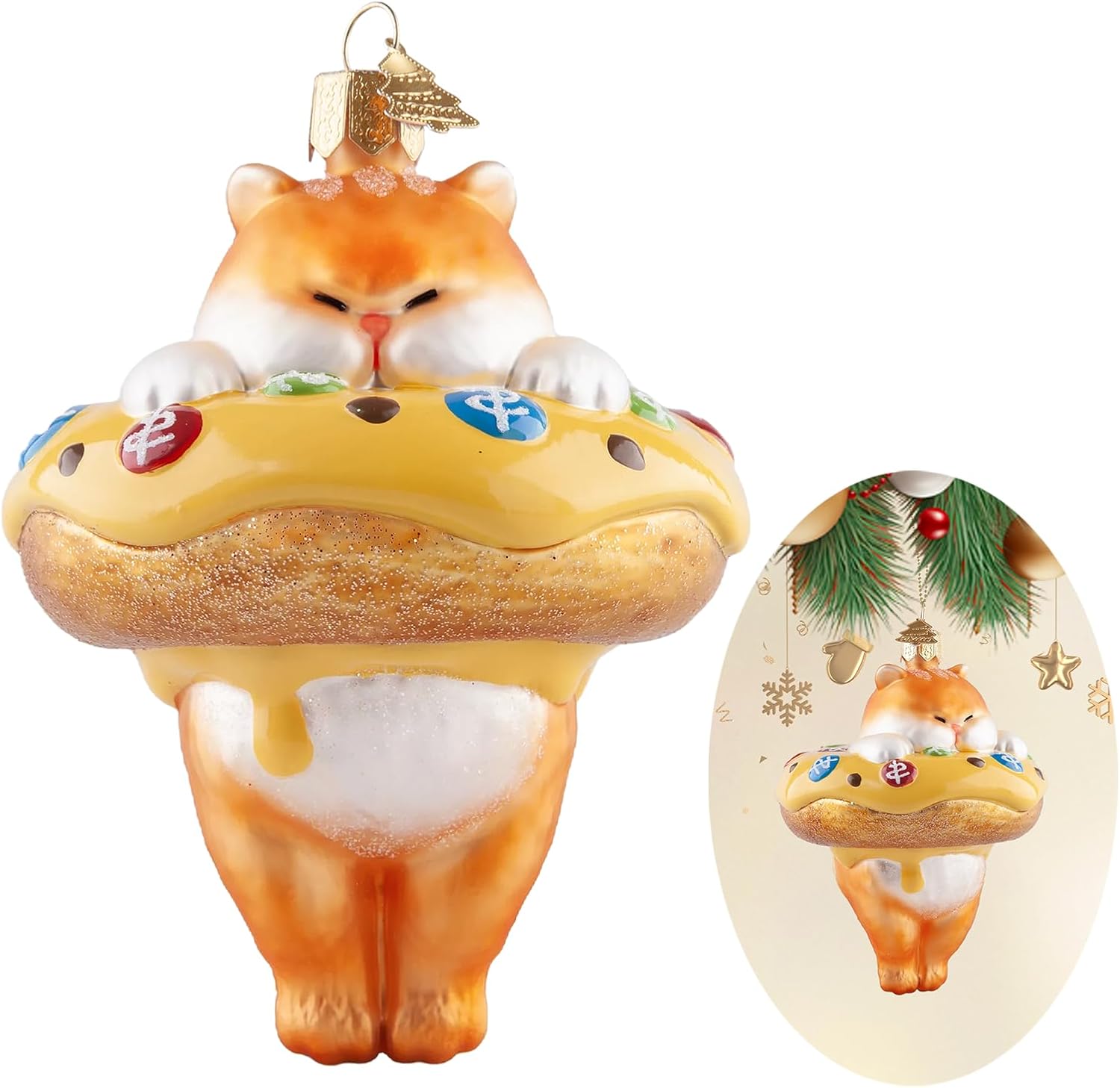 - Exquisite & Unique Design: The Christmas tree ornament is designed with donuts paired with a cute Garfield image, presenting a sweet and naughty atmosphere with bright overall colors. This glass ornament is entirely hand-painted, with exquisite craftsmanship and delicate and vivid imagery. You can decorate any place you want, and believe it can blend well