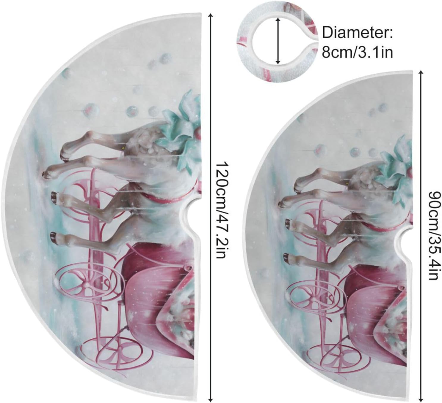 Christmas Tree Skirt - 36 Inch Santa Claus Pink Reindeer Xmas Tree Mat for New Year Party Decorations