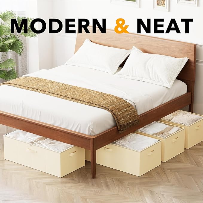 - 4 PACK BEIGE UNDER BED STORAGE - Make your underbed space neat and organized with this storage bin organizer; Each Bin SIZE: 31.5"L x 15.8"W x 10"H