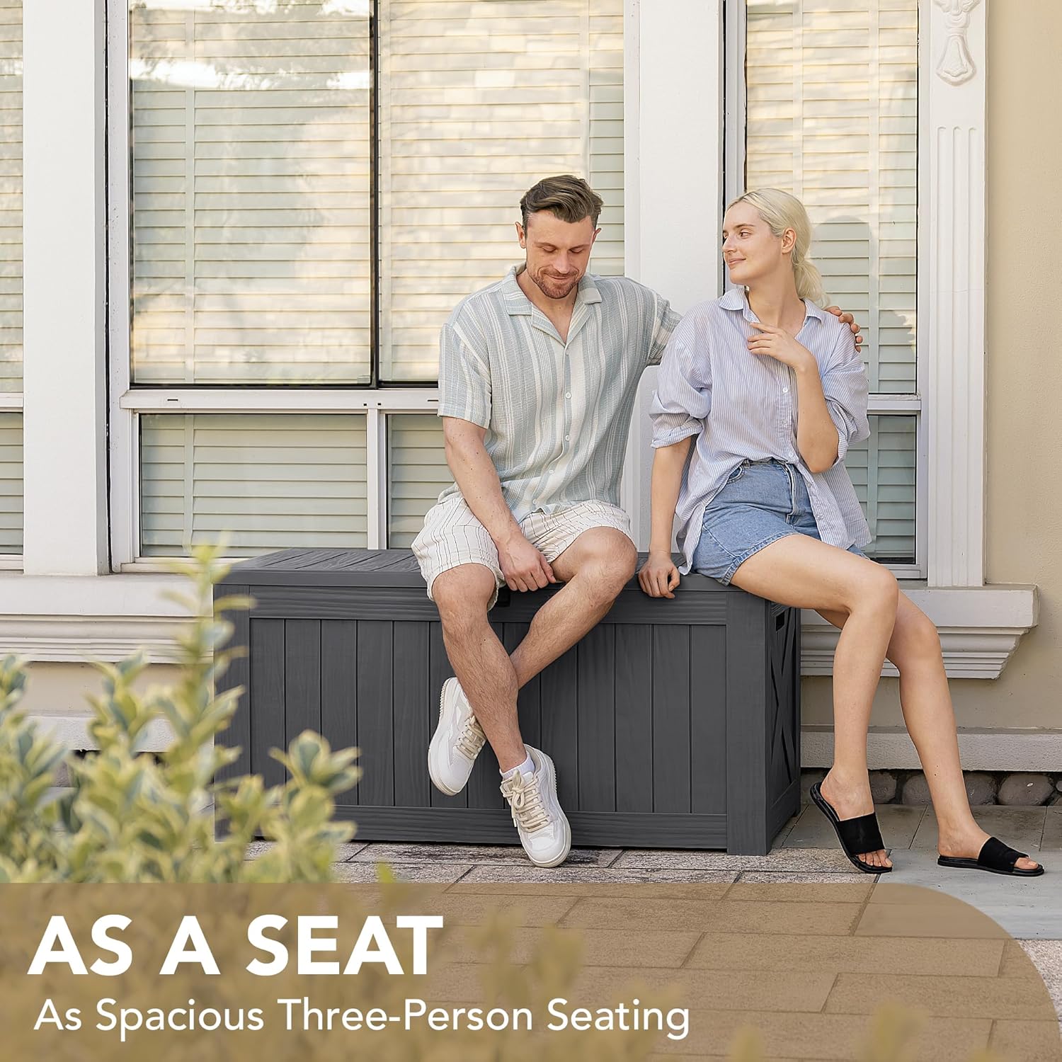 Devoko 120 Gallon Deck Box Resin Outdoor Storage Box Waterproof for Patio, Large Outdoor Storage Bench Lockable for Outside (Grey)