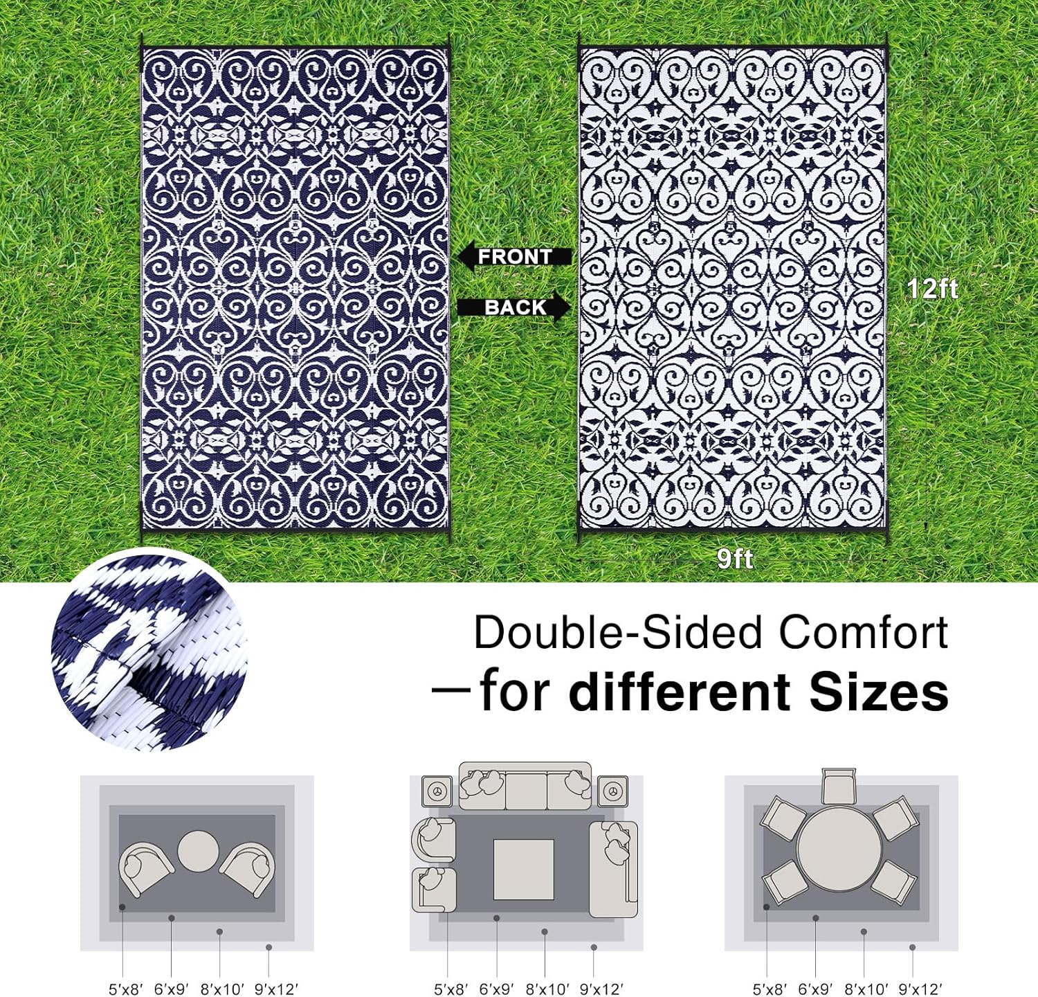 - Lightweight & Portable: Ultra-lightweight and foldable, this outdoor rug is a breeze to carry and store. Take it to picnics, beach outings, or camping trips with ease. Perfect for casual outdoor gatherings, it combines practicality with effortless portability.