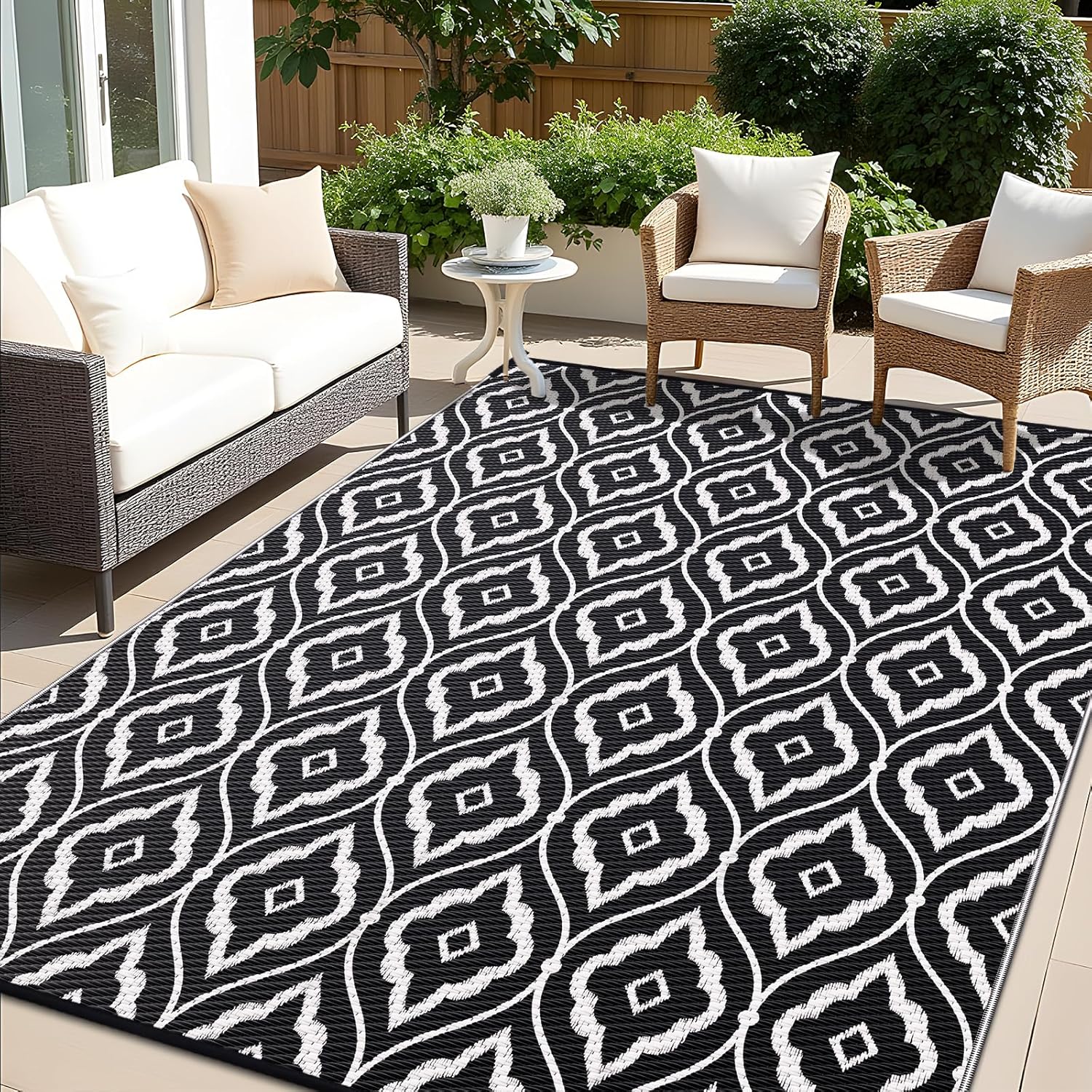 - UV-Resistant & Built to Last: With a UV-protective coating, this outdoor patio rug resists color fading, maintaining its vibrant look for years. Reinforced edges provide exceptional durability, making it ideal for frequent use in all weather conditions, whether at home or on the go.