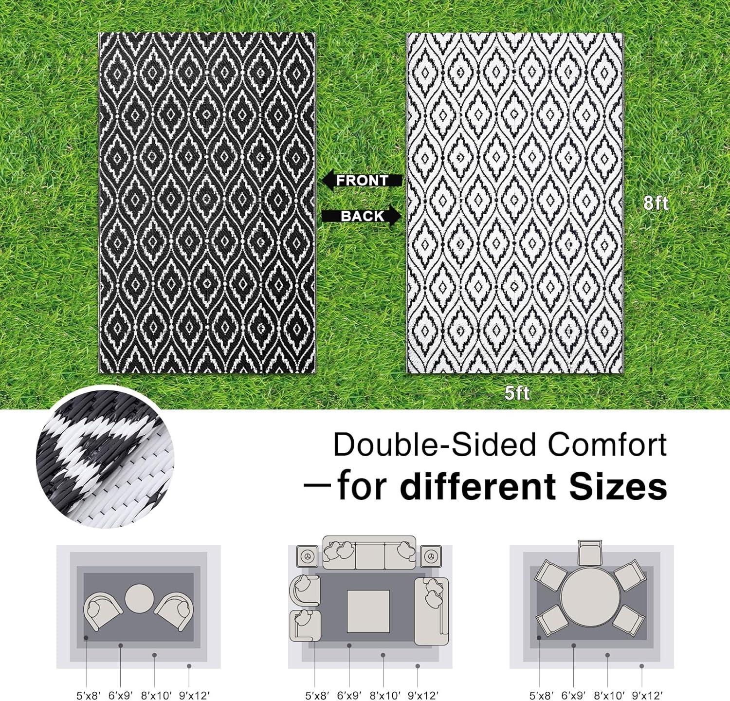 - Lightweight & Portable: These foldable, lightweight outdoor rugs are incredibly easy to transport. Take them to picnics, lawn parties, or camping trips without hassle, ensuring comfort and style wherever you go.