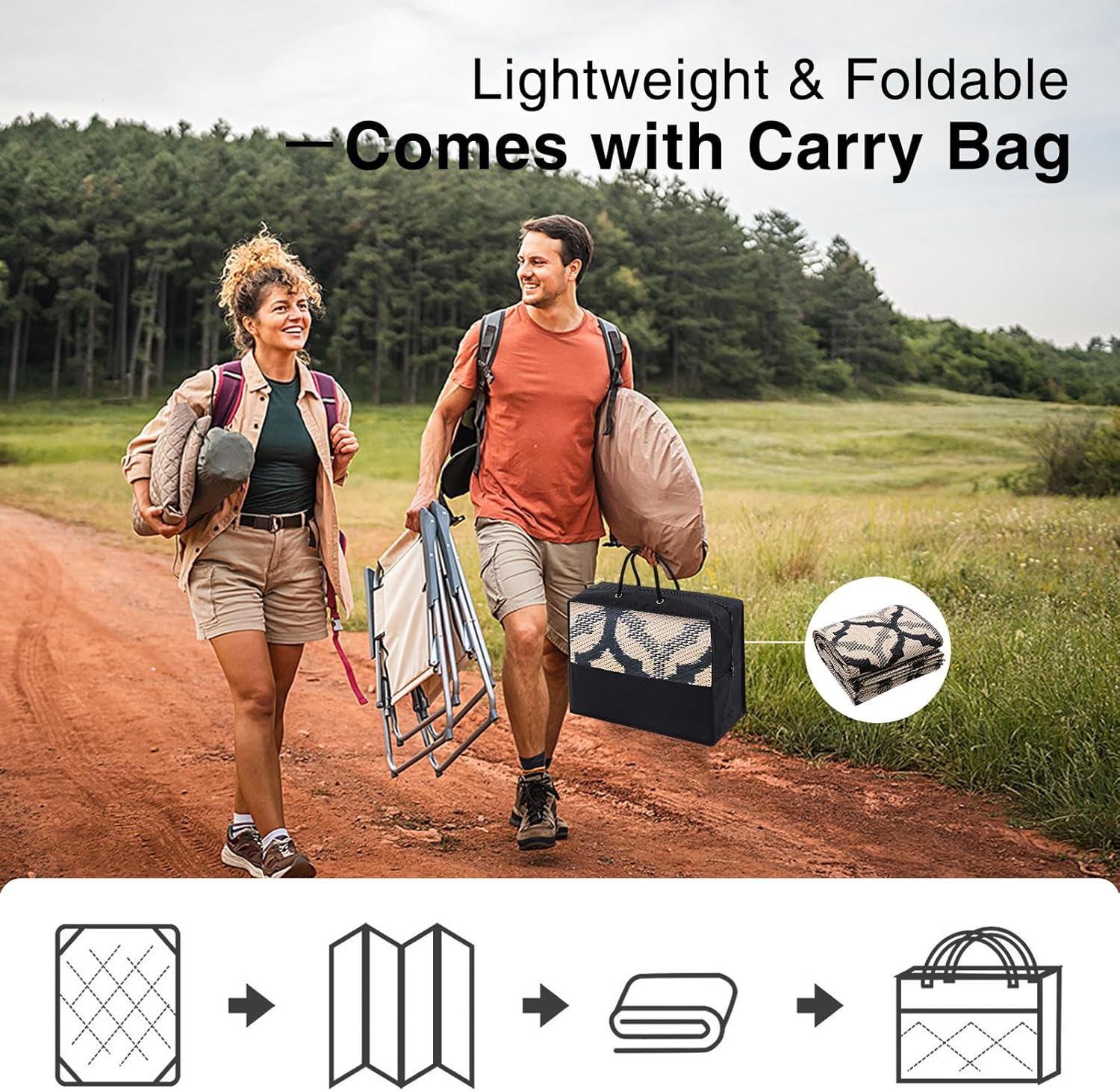 - Lightweight & Portable: Easy to fold and carry, this camping rug is your go-to for outdoor adventures. Ideal for camping trips, gatherings, or sports events, it ensures comfort and style wherever you go.