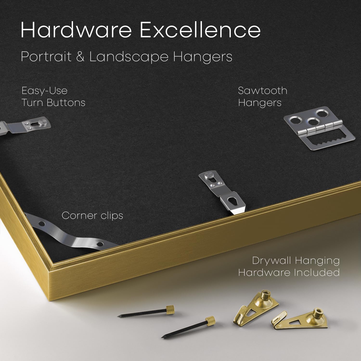 Homeforia 24x24 Gold Square Frame, High End Metal 24 x 24 Large Gold Poster Frames with Mat 20 by 20 for Photo, 24by24 Thin Picture Frame Matted to 20x20 inch Print, Tempered Glass, Wall Kit, Set of 1