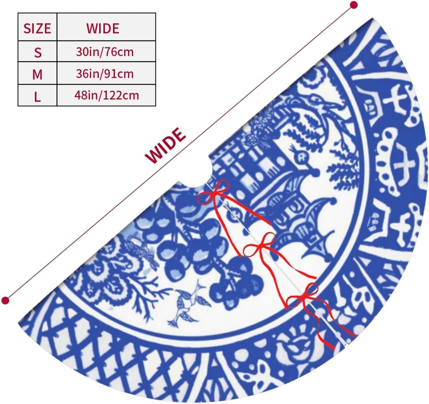 48" Large Christmas Tree Skirt Blue Oriental Rabbit Whimsical Pattern Tree Mat Base Cover for Xmas Festive Holiday Party Decoration Ornaments