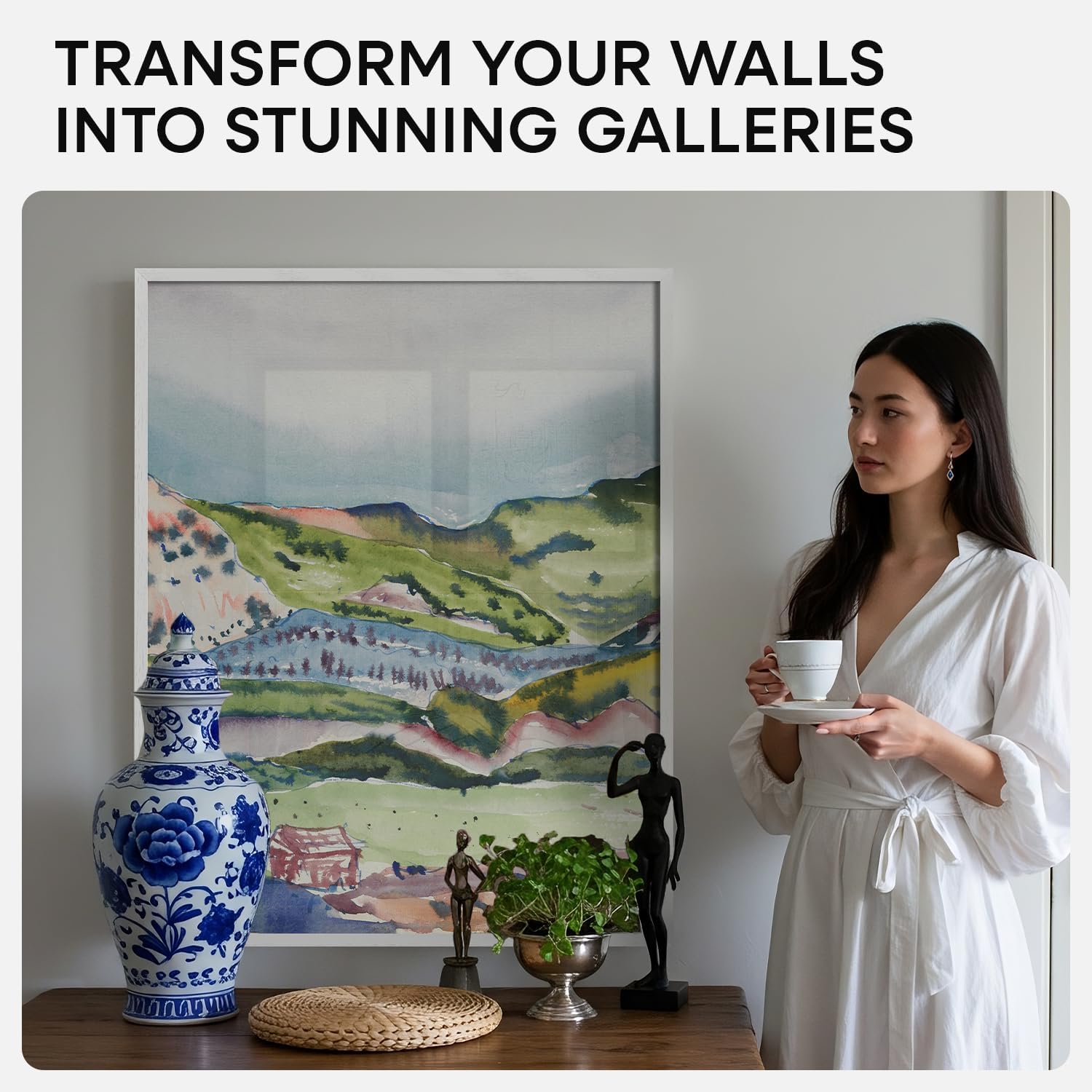 - REAL WOOD. ELEVATED FINISH. UNDENIABLE STYLE. Unlike flat white plastic, this painted oak frame brings depth, weight, and quiet luxury to your space..