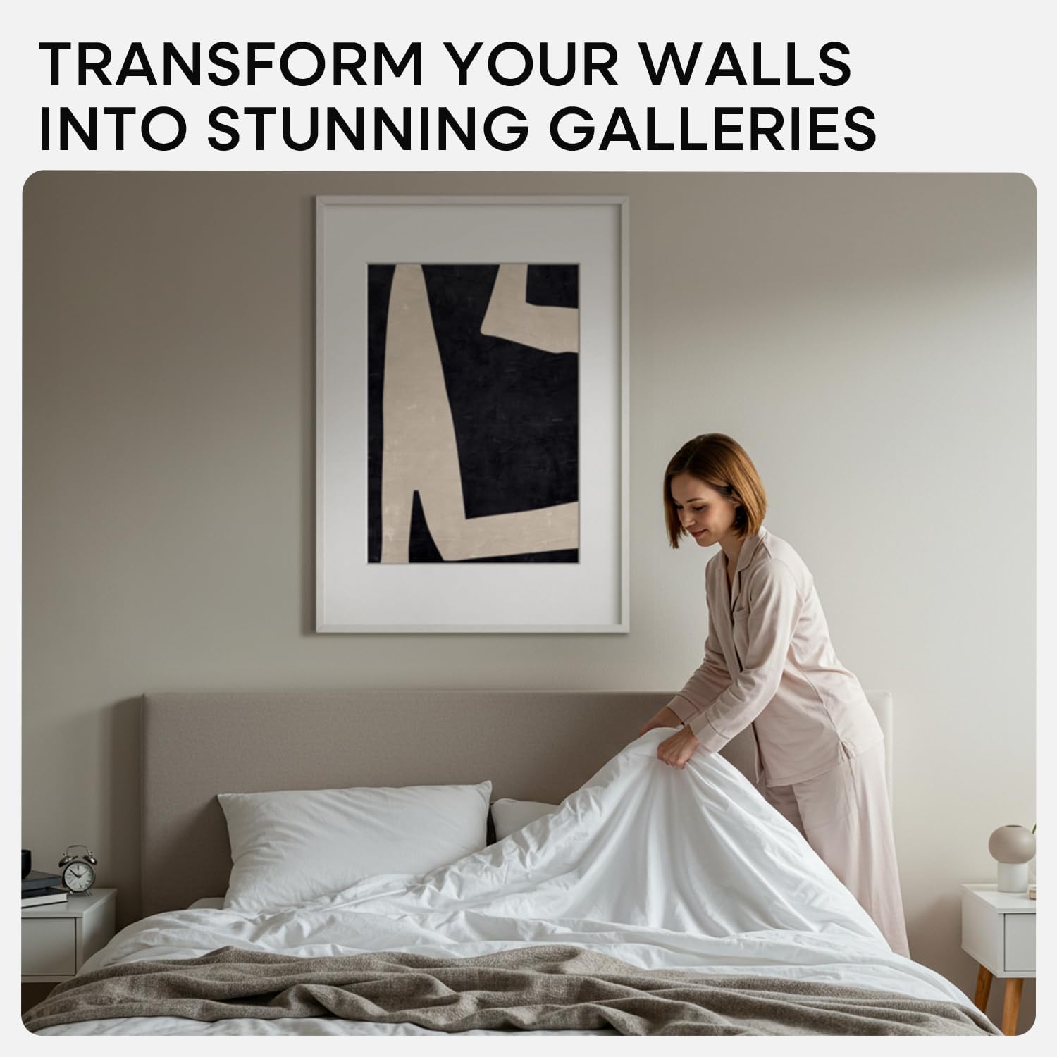 Homeforia A1 Frame White Wood, High End Oak 23.4 x 33.1 White Wooden Poster Frames Matted to 16.5 by 23.4 inches Photo, A1 Size Large Wood Picture Frame with Mat A2, Tempered Glass, Wall Kit, Set of 1