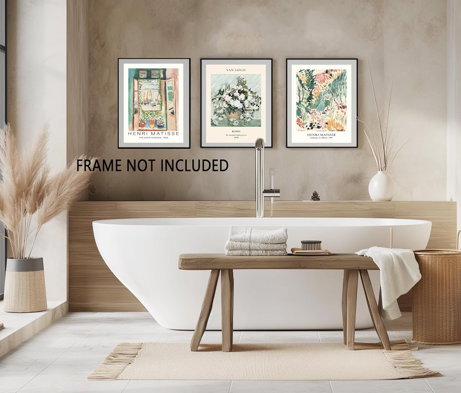 - 1.Matisse Wall Art–This vintage Matisse wall art is one of the most popular trends now. The beige poster for room aesthetic is ideal for aesthetic room decor. Featuring Matisse's "Landscape at Collioure", Van Gogh's "Roses", and Matisse's "The Open Window", Sage green botanical abstract canvas wall art prints ,Each canvas incorporates an abstract floral theme paired with soothing sage green and neutral tones.