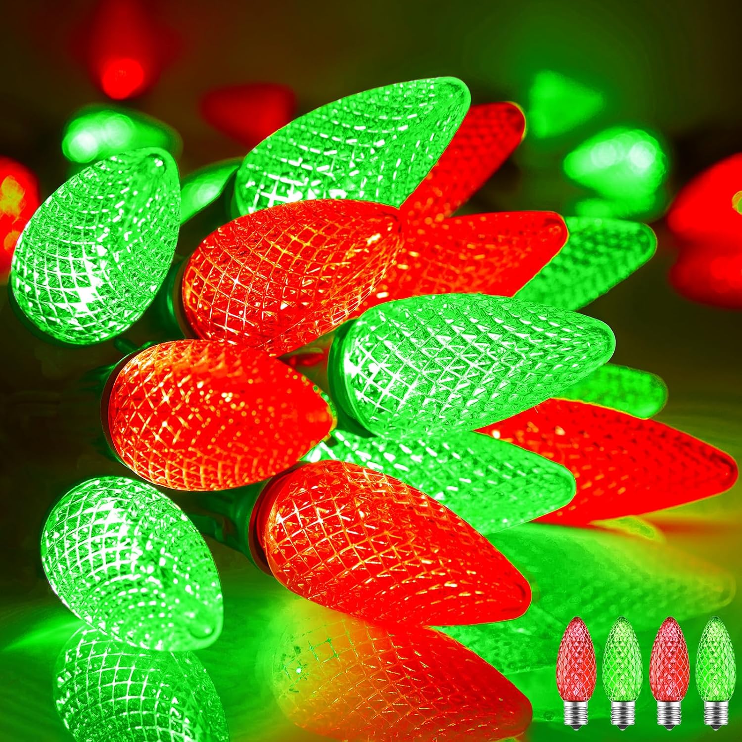 Minetom C9 Christmas String Lights, 100 Ft LED Commercial Outdoor Christmas Lights with 100 Red and Green C9 Bulbs, Waterproof Connectable UL Certified for Indoor Roofline Backyard Xmas Decor