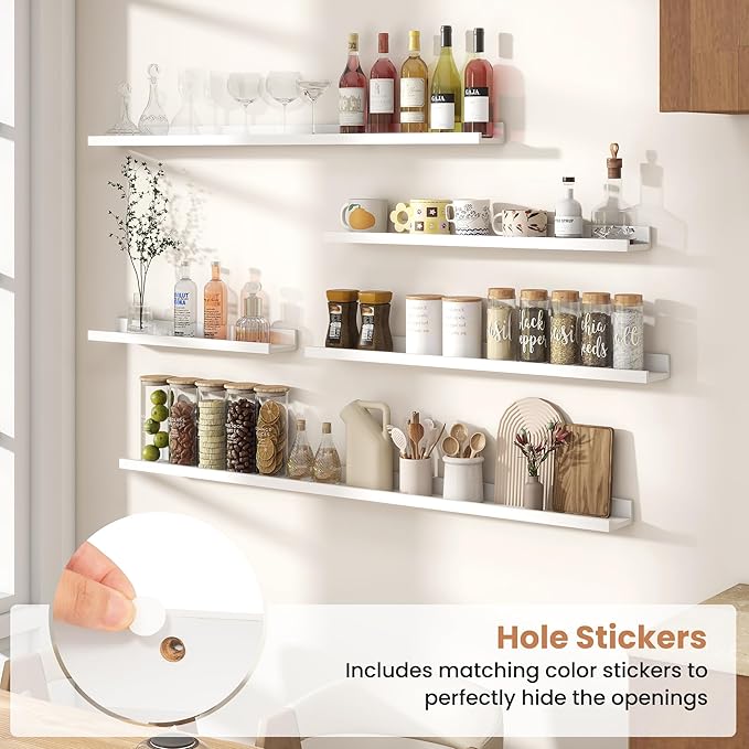 - Enhanced Stability Design: Featuring a secure lip at the front, these floating shelves prevent items from slipping or falling, confidently supporting up to 42 lbs, making these MDF wood shelves ideal for showcasing cherished items.