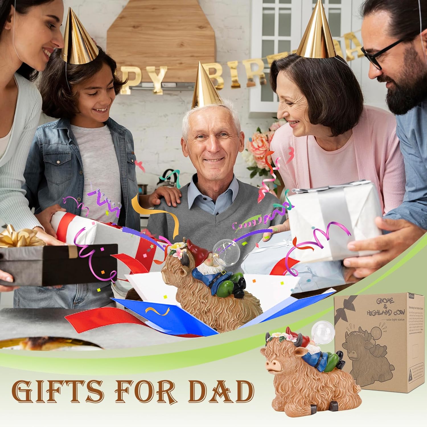Solar Highland Cow Gnome Garden Decor Statue, Outdoor Funny Solar Light Decoration for Yard, Patio, Lawn, Unique Housewarming, Birthday Gift for Women, Mom, Grandma