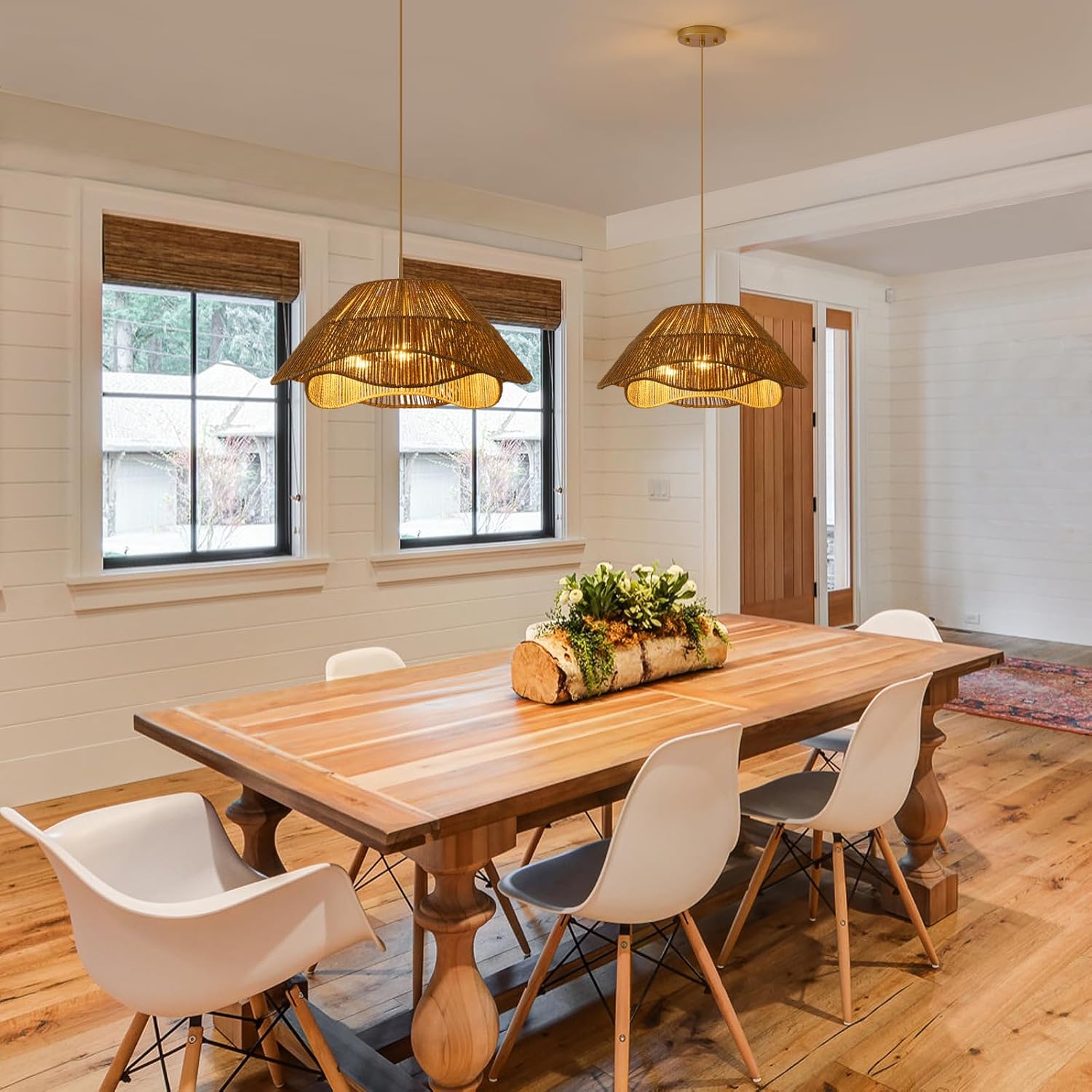 - 【Wide Applications】Rattan pendant light fixture exudes natural charm and is perfect for boho and rustic décor, creating a cosy and welcoming atmosphere, perfect for dining room, kitchen island, living room, bedroom, entryway or hallway, etc.