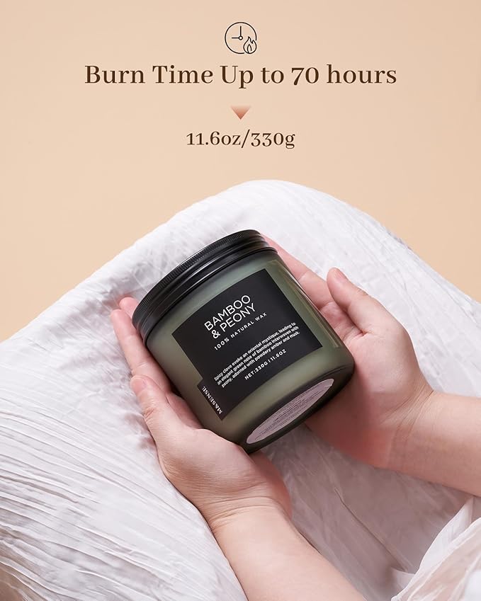 M&SENSE Bamboo Peony Scented Candle, 11.6oz Aromatherapy Jar Candle, 70 Hour Burn Time, Natural Soy Wax Blend, Stress Relief, Home Fragrance