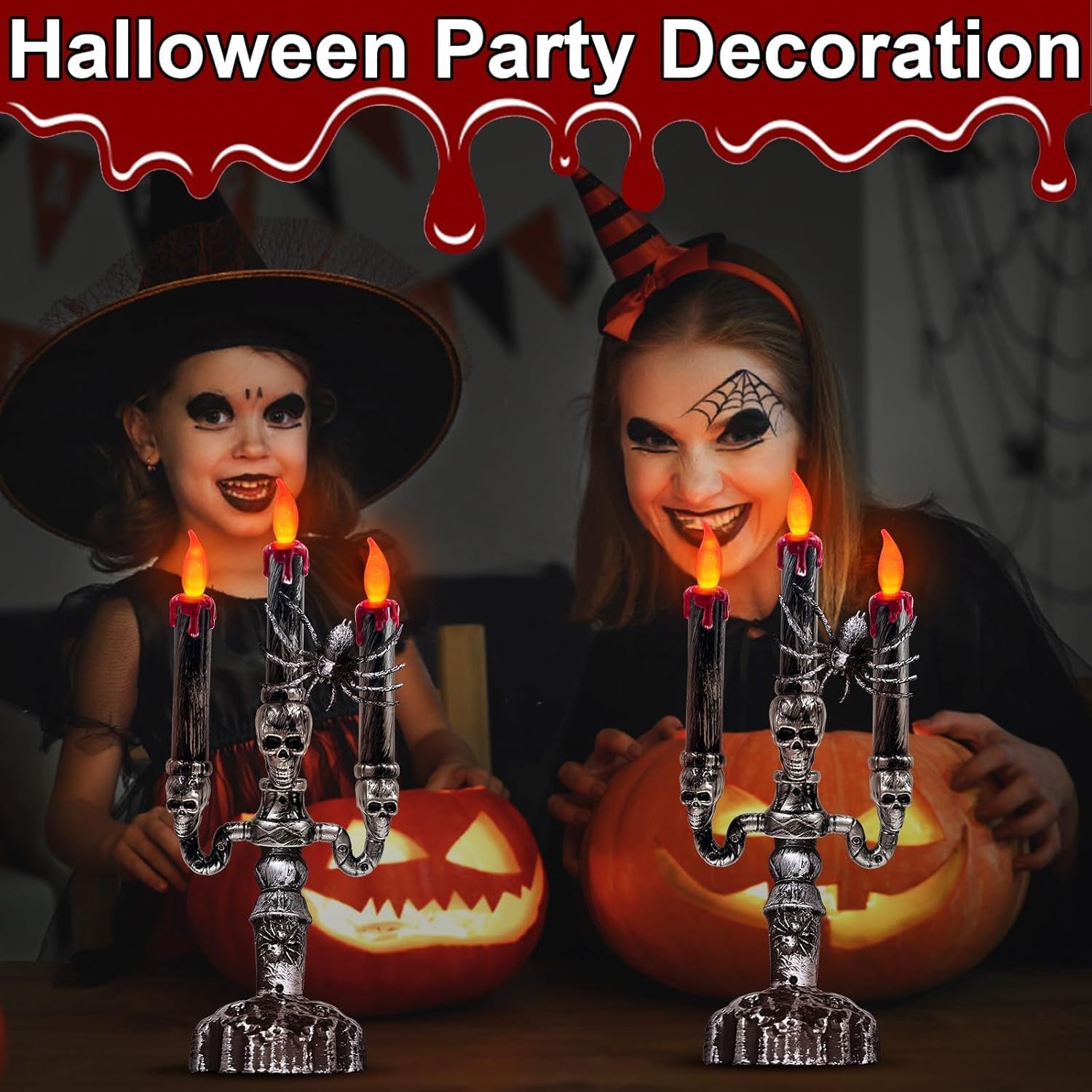 TURNMEON 2 Pack Halloween Candles Halloween Decorations LED Flame Less Candelabra 3-Flickering Lamp Light Up Battery Operated Candles Holder Spider Decor Indoor Table Home Haunted Party