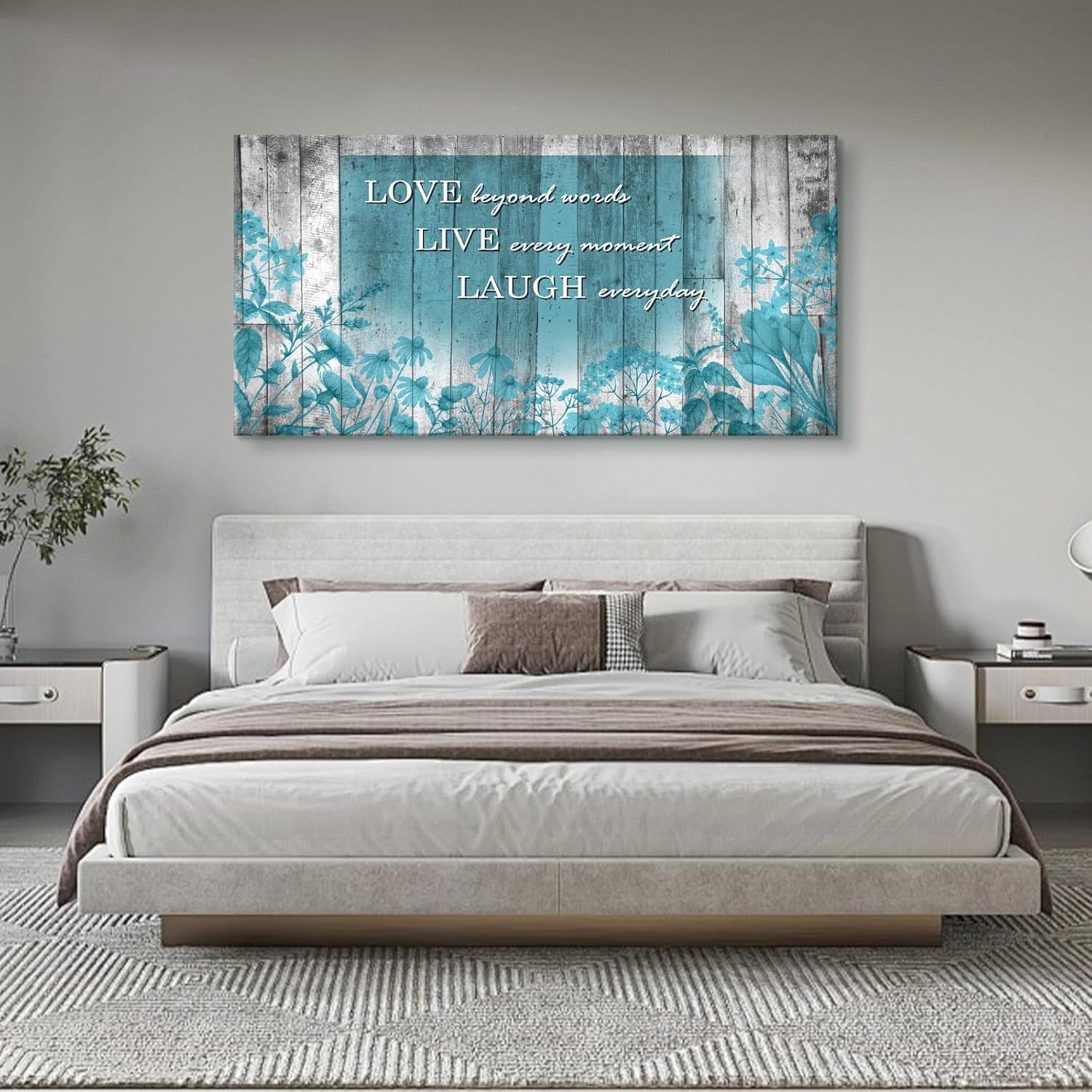 Cao Gen Decor Art S07075 Wall Art Motivational Quotes Canvas Prints 1 Panels Teal Flowers Abstract Pictures Paintings Stretched and Framed for Living Room Bedroom Kicthen Office Artwork