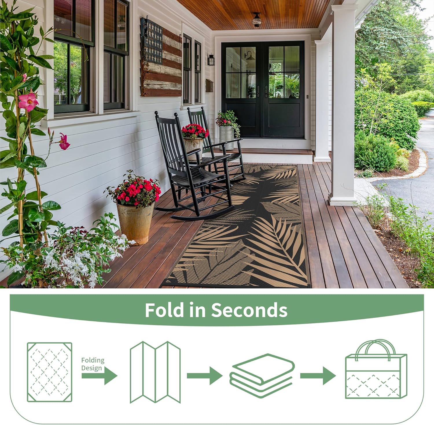 - Perfect Choice For RV Camping: Woven from lightweight plastic straws, these RV outdoor rugs fold compactly to fit in the included carry bag. This portable waterproof outdoor rug is easy to carry, with 4 corner loops and stakes to secure it. Using this camper rug reduces travel fatigue and adds plenty of space for fun — also a stylish touch for fall decor when setting up your campsite