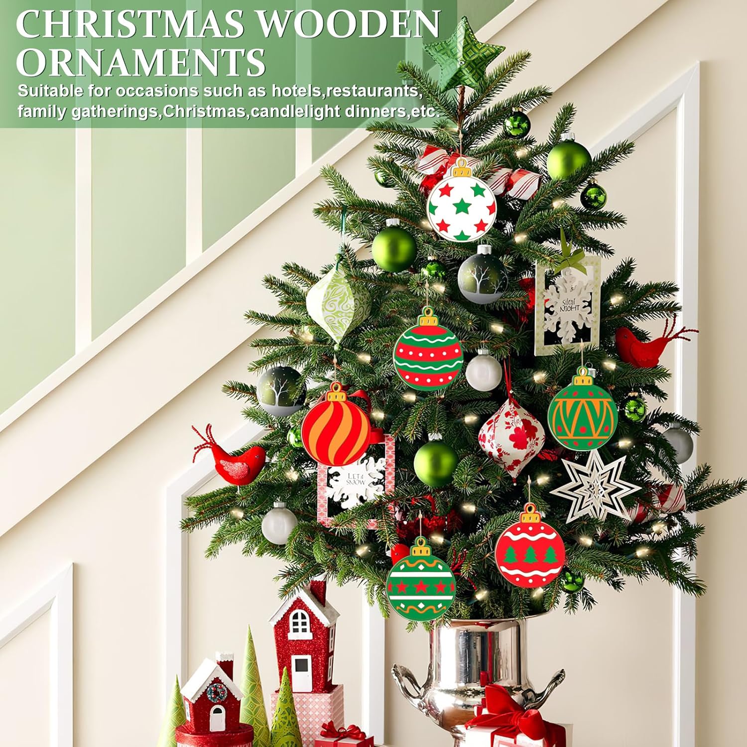 80PCS Wooden Christmas Ornaments to Paint, 8 Styles DIY Blank Unfinished Wood Christmas Ball Christmas Decoration Cutouts Ornament for Crafts Winter Hanging Decorations