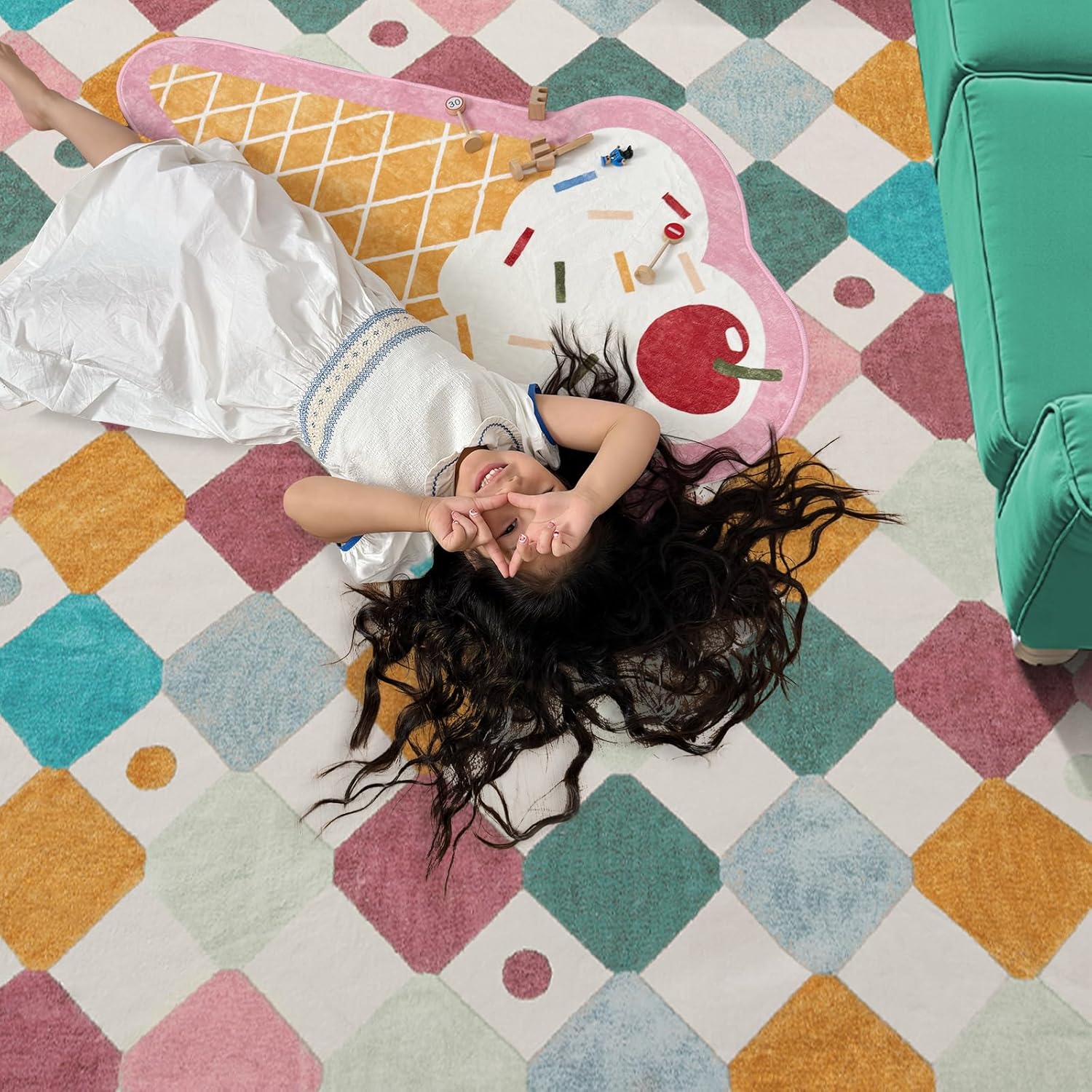 - Vintage Colorful Design: Elevate your home decor with our eye-catching colorful rug, showcasing a delightful diamond lattice splicing pattern. This argyle design brings a sense of playful charm to kids room while adding a energy touch to adult spaces