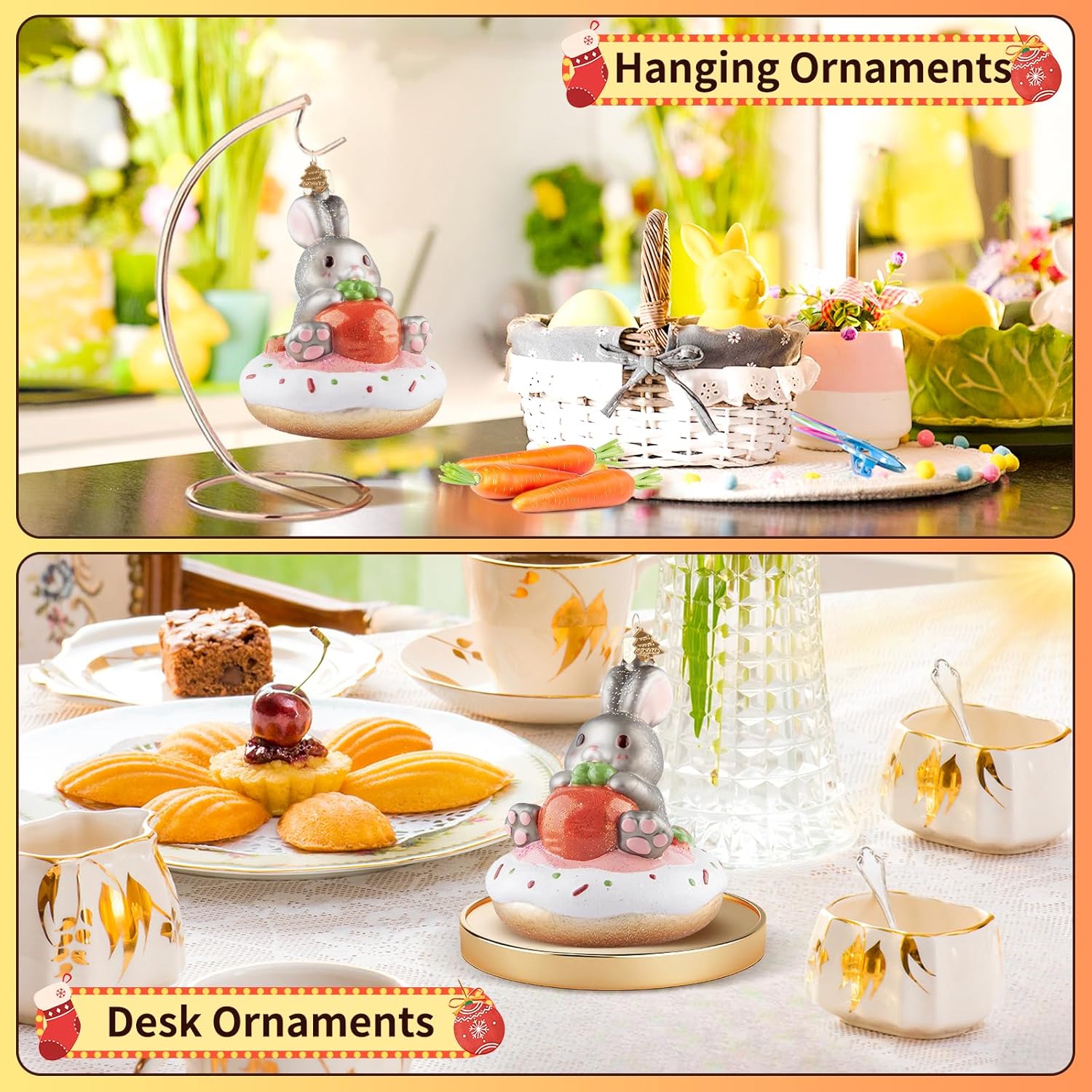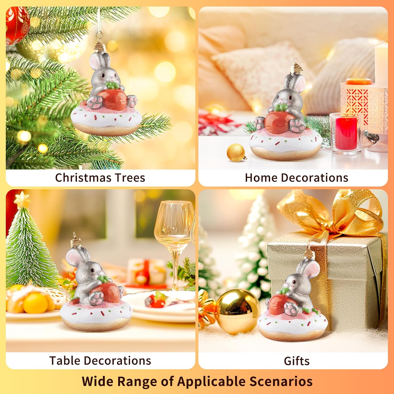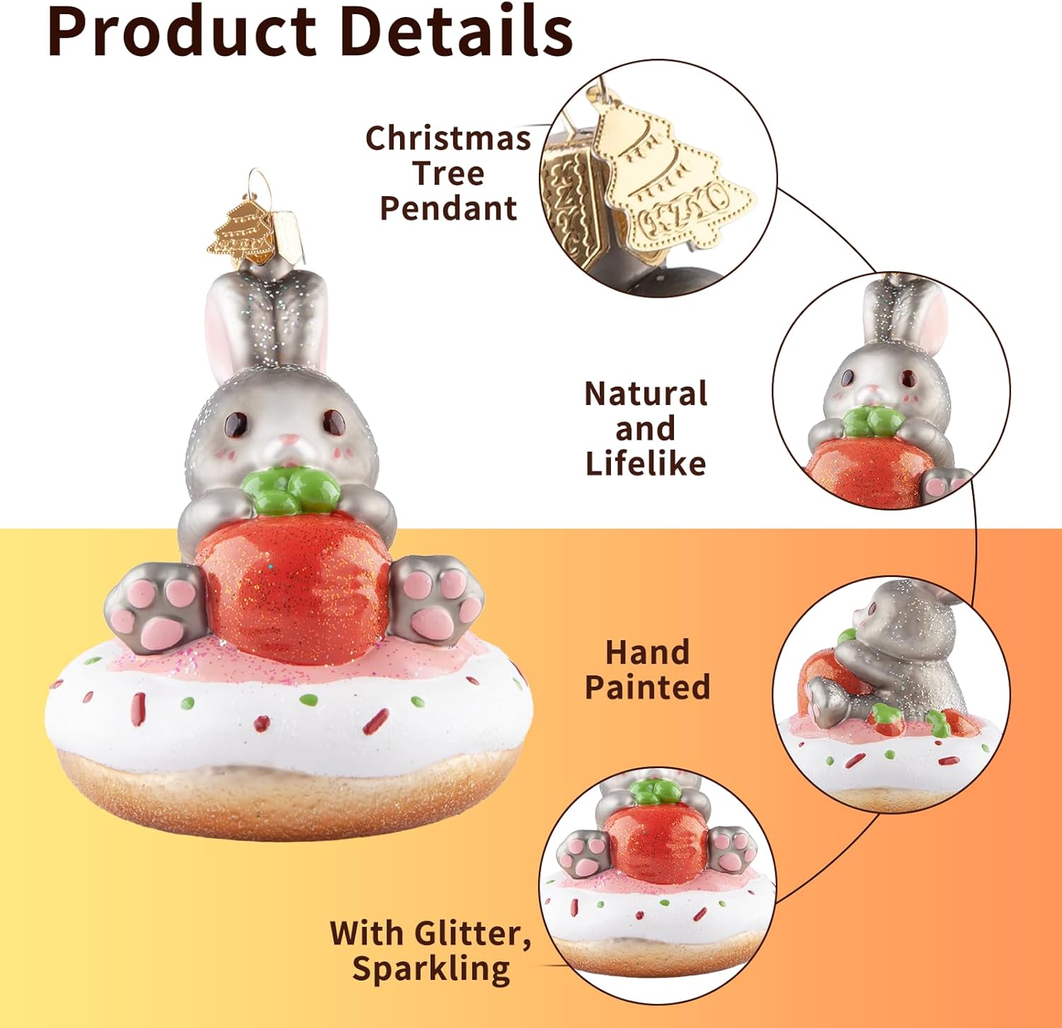 - Cute & Unique Design: Hand-blown glass ornament adopts the image of a cute little bunny, who sits on a delicious donut and holds a big carrot in its arms. It is cute and greedy. The whole is hand-painted, with exquisite craftsmanship, delicate and vivid image depiction. You can decorate any place you want to decorate, and believe it can be integrated well