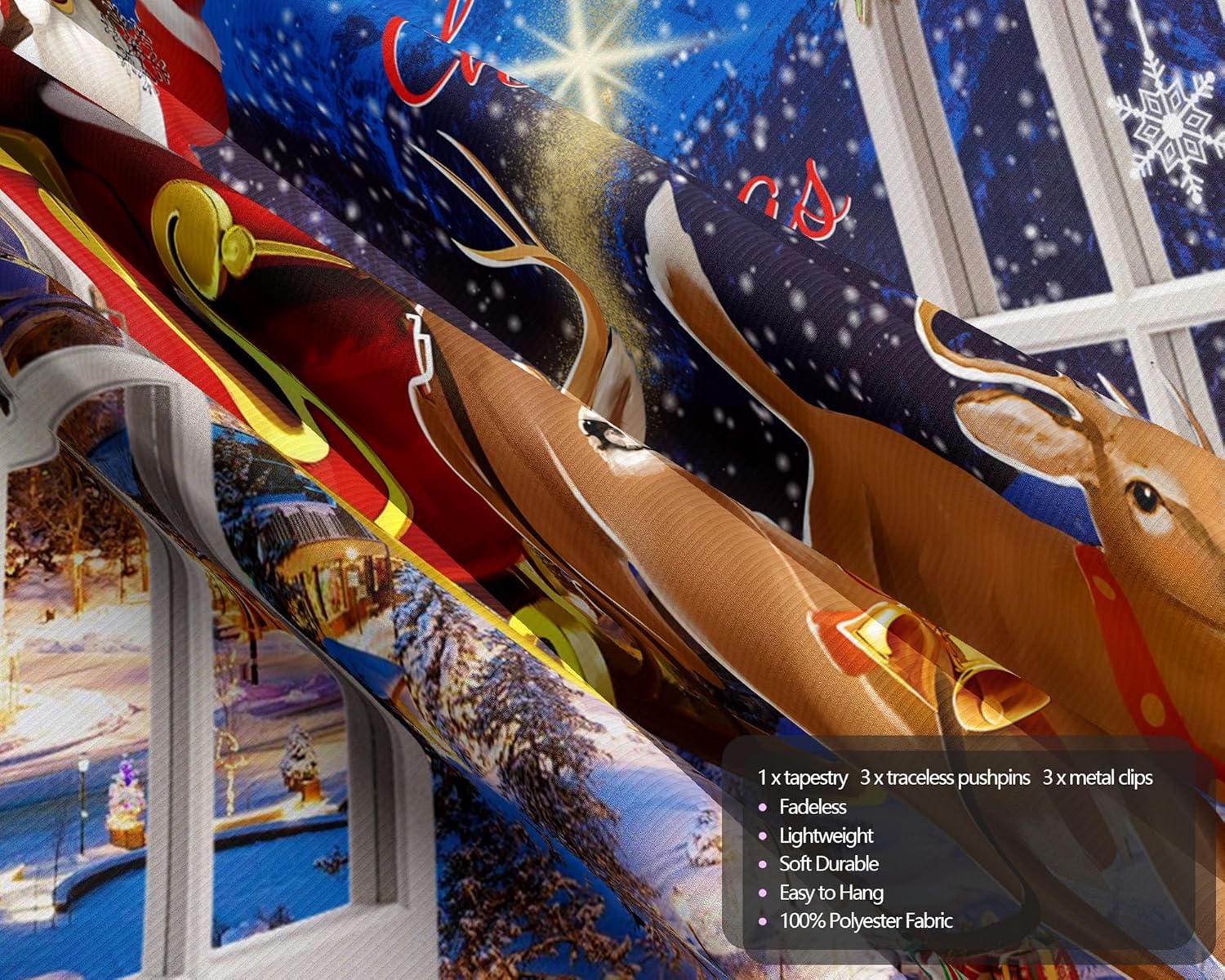 QGHOT Christmas Window Tapestry Wall Hanging Christmas Backdrop Xmas Winter Window Wall Decor Santa Claus Tapestries for Bedroom Living Room Dorm Holiday Party Decoration, Large