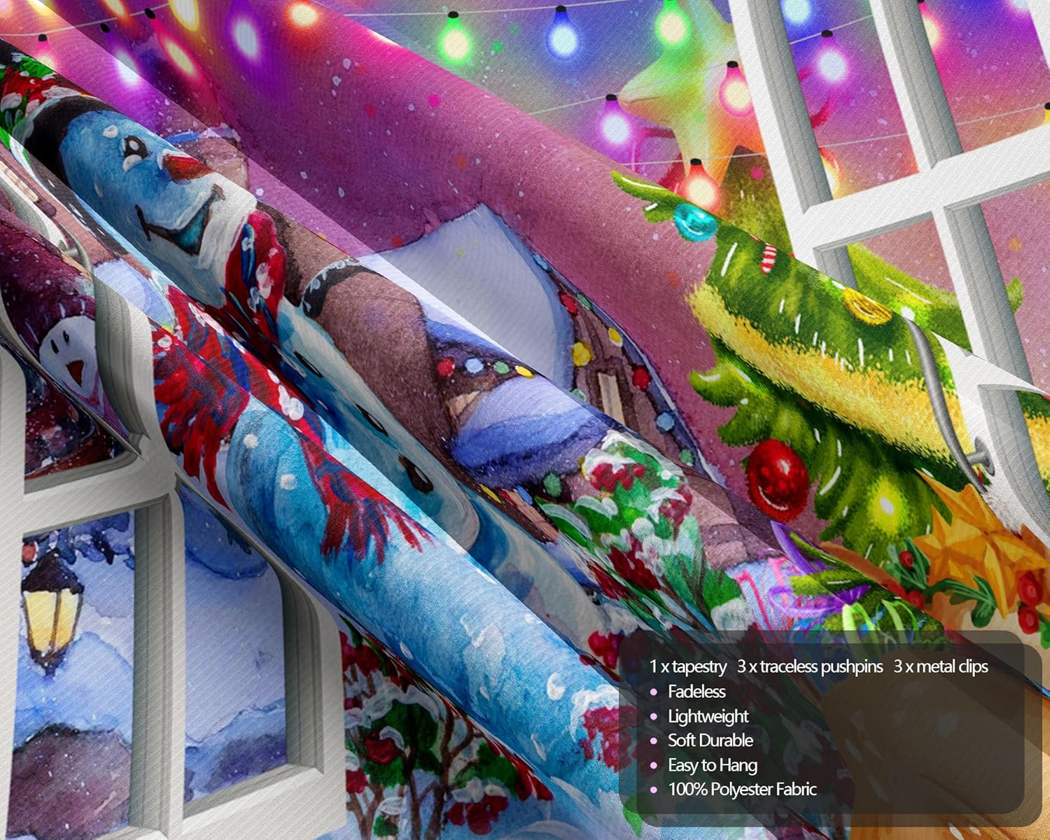 QGHOT Christmas Window Tapestry Wall Hanging, Christmas Backdrop Winter Window Wall Decor Xmas Snowman Deer Tapestries for Bedroom Living Room Dorm Holiday Party Decoration, Extra Large