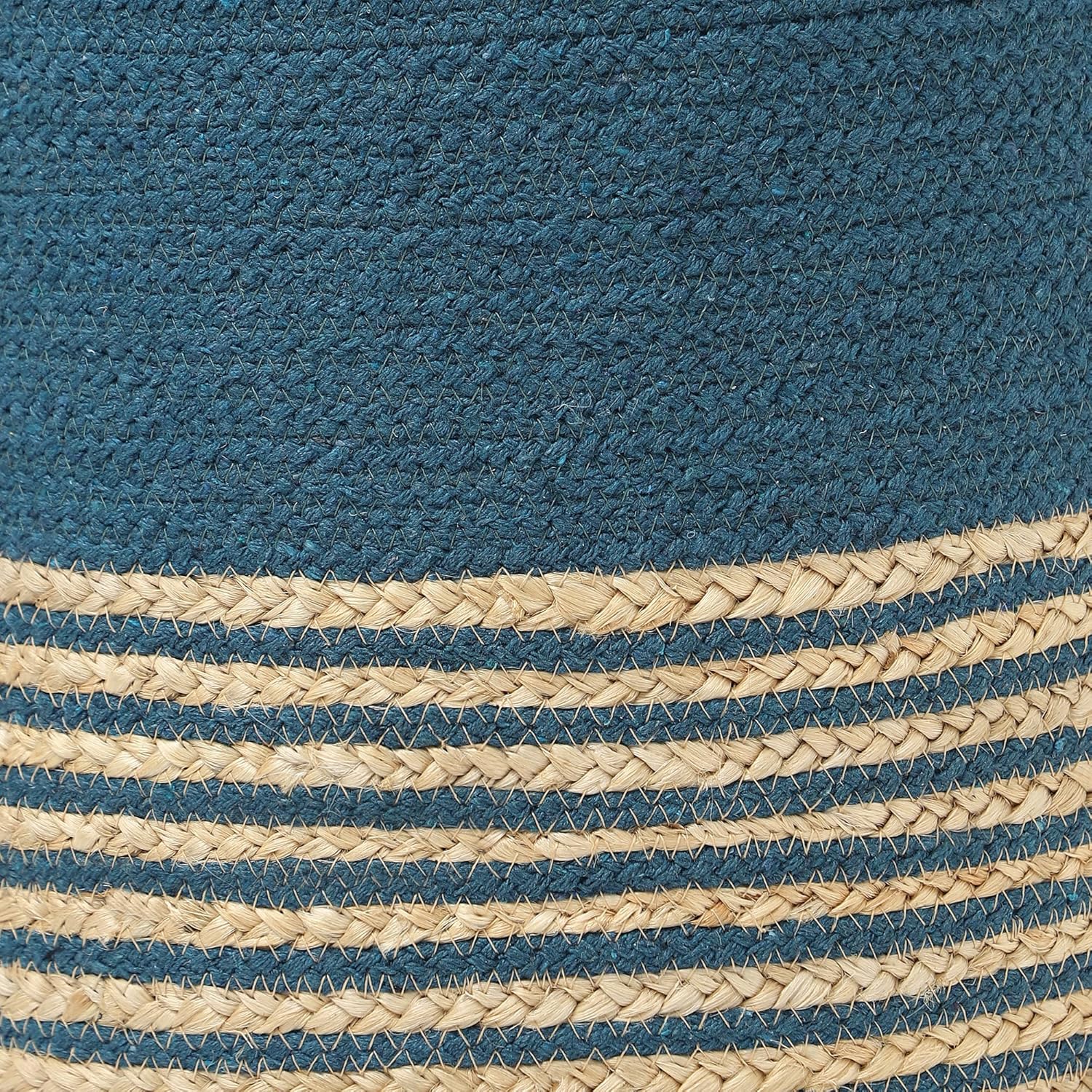 REDEARTH · Cylindrical Pouf Foot Stool Ottoman - Jute Braided Pouffe Poof Accent Sitting Footrest for Living Room, Bedroom, Nursery, Patio, Lounge Set of 2 (Teal Natural, 14.5"x14.5"x16")