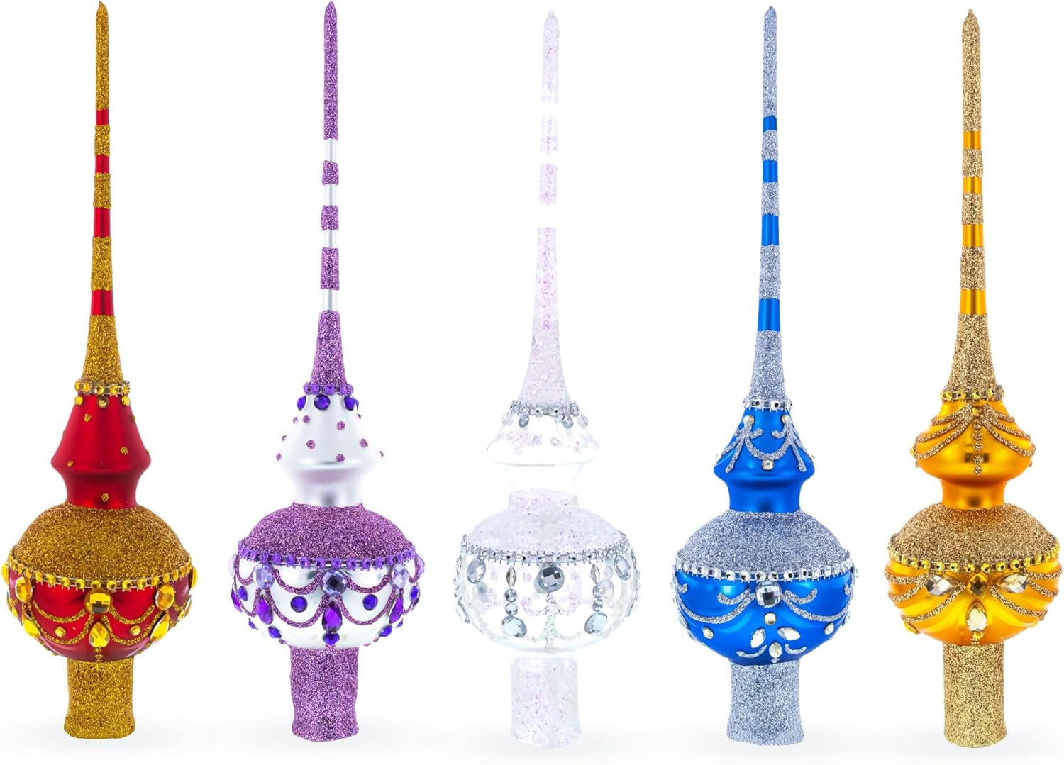 Enchanted Emerald Jeweled Green Blown Glass Christmas Tree Topper 11 Inches