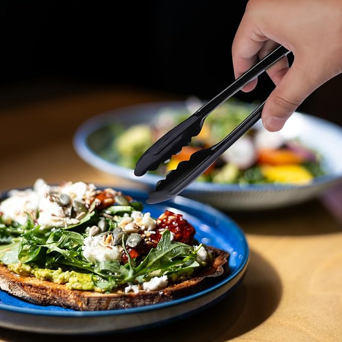 MSY BIGSUNNY 9 Inch Kitchen Food Tongs, Buffet Tongs, Serving Tongs, Black Aluminum Tongs - Set of 3