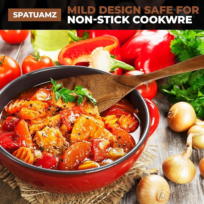 - 【Safe for Nonstick Cookware – Durable & Heat-Resistant】: Our teak wood utensils are perfect for nonstick cookware, preventing scratches or damage to your pans. These utensils are strong, long-lasting, scent-free, and heat-resistant, making them ideal for high-temperature cooking