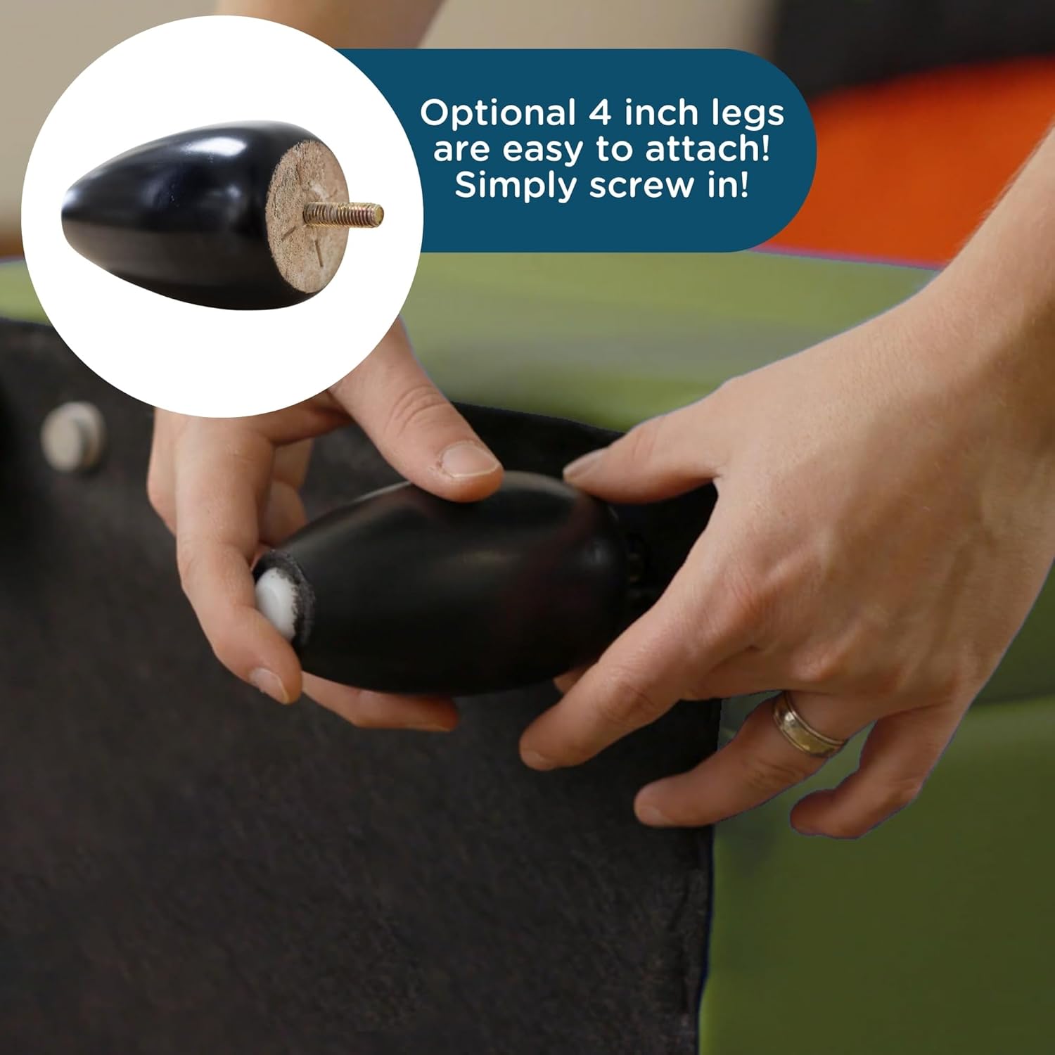 - CHAIR GROWS WITH YOUR CHILD: The adjustable toddler chair and sofa set includes 8 black wooden legs that increase each piece's height 4 inches, no hardware required