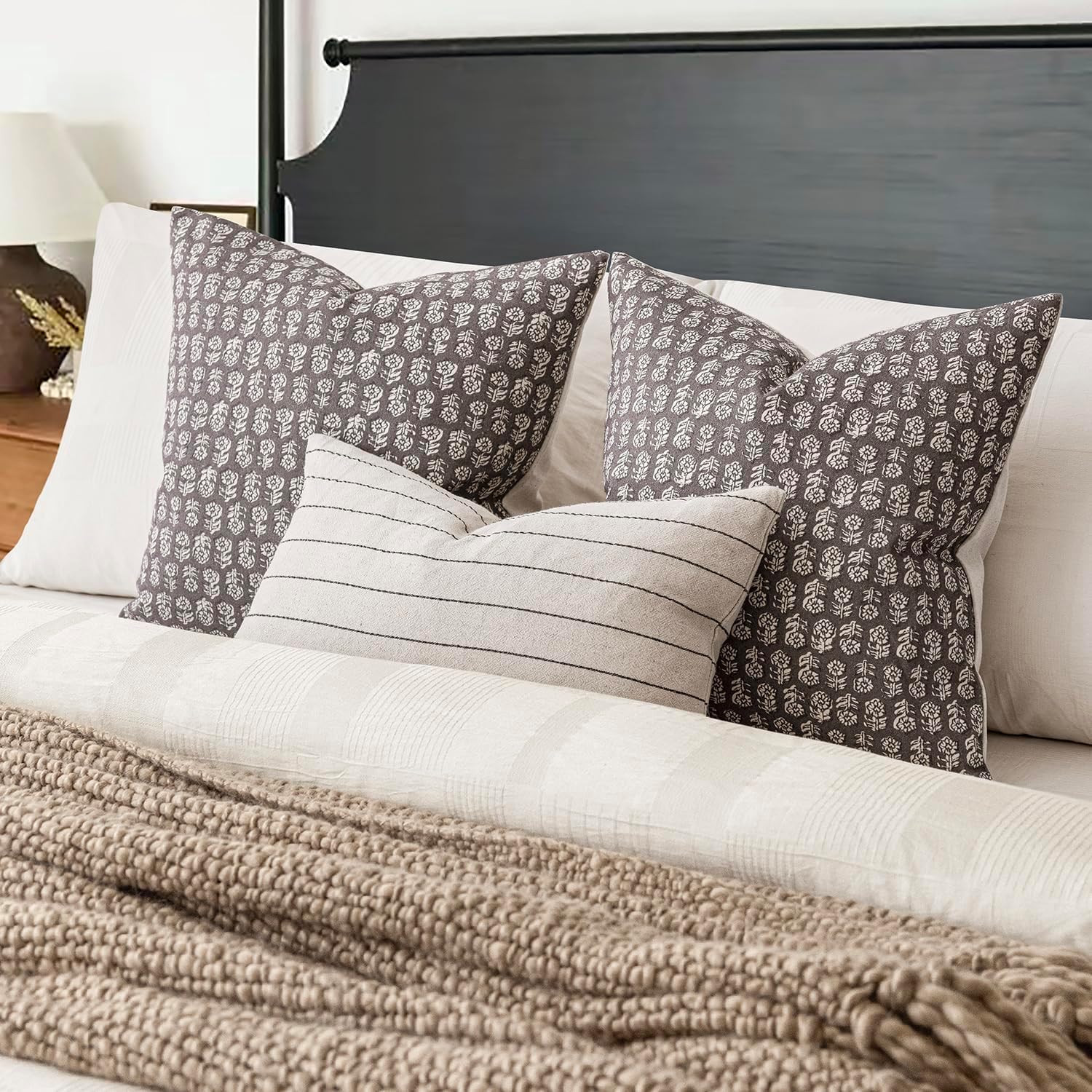 Foindtower Set of 2 Decorative Vintage Floral Print Throw Pillow Covers Neutral Modern Farmhouse Cushion Covers Boho Home Decor for Sofa Couch Chair Bedroom Living Room Outdoor,22×22 Inch,Rustic Gray