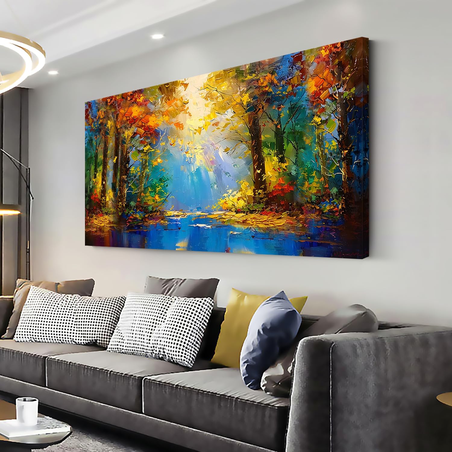 LASMOND Beautiful Colorful Forest Scenery Landscape Wall Art Decor Artwork for Bedroom Living Room (48x24 Inches)