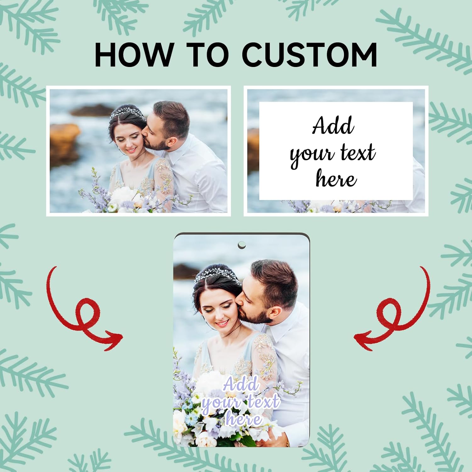- 【Custom Photo Text Christmas Ornaments】Click on the " Customize Now " button to design your own Christmas ornament special with desired Photo, Picture, Logo, Text. Simply upload any photo, fit by the corners. Choose your font color, fill in the optional blank with your text. Our designers will do the rest.