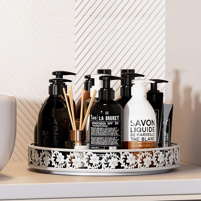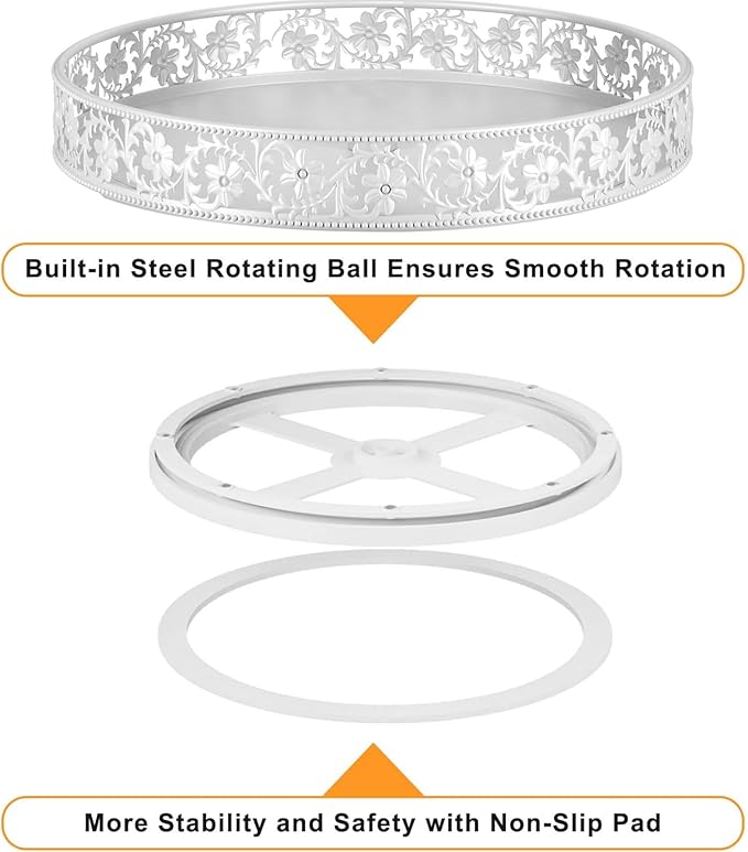 - Floral Raised Edges: The raised edge lazy susan features a beautiful classic floral design, provides superior decorative vision, and prevents items from falling while spinning, making it safer to move the lazy susan organizer from one place to another. The open design keeps items visible and easily accessible.