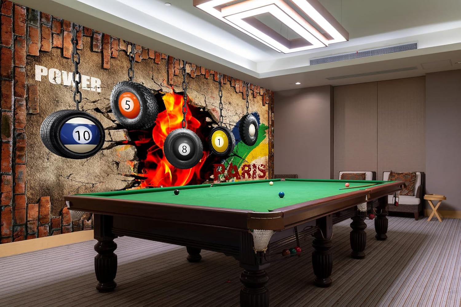 Industrial Wallpaper Billiard Tire Wall Mural for Pool Room(Not Peel and Stick)