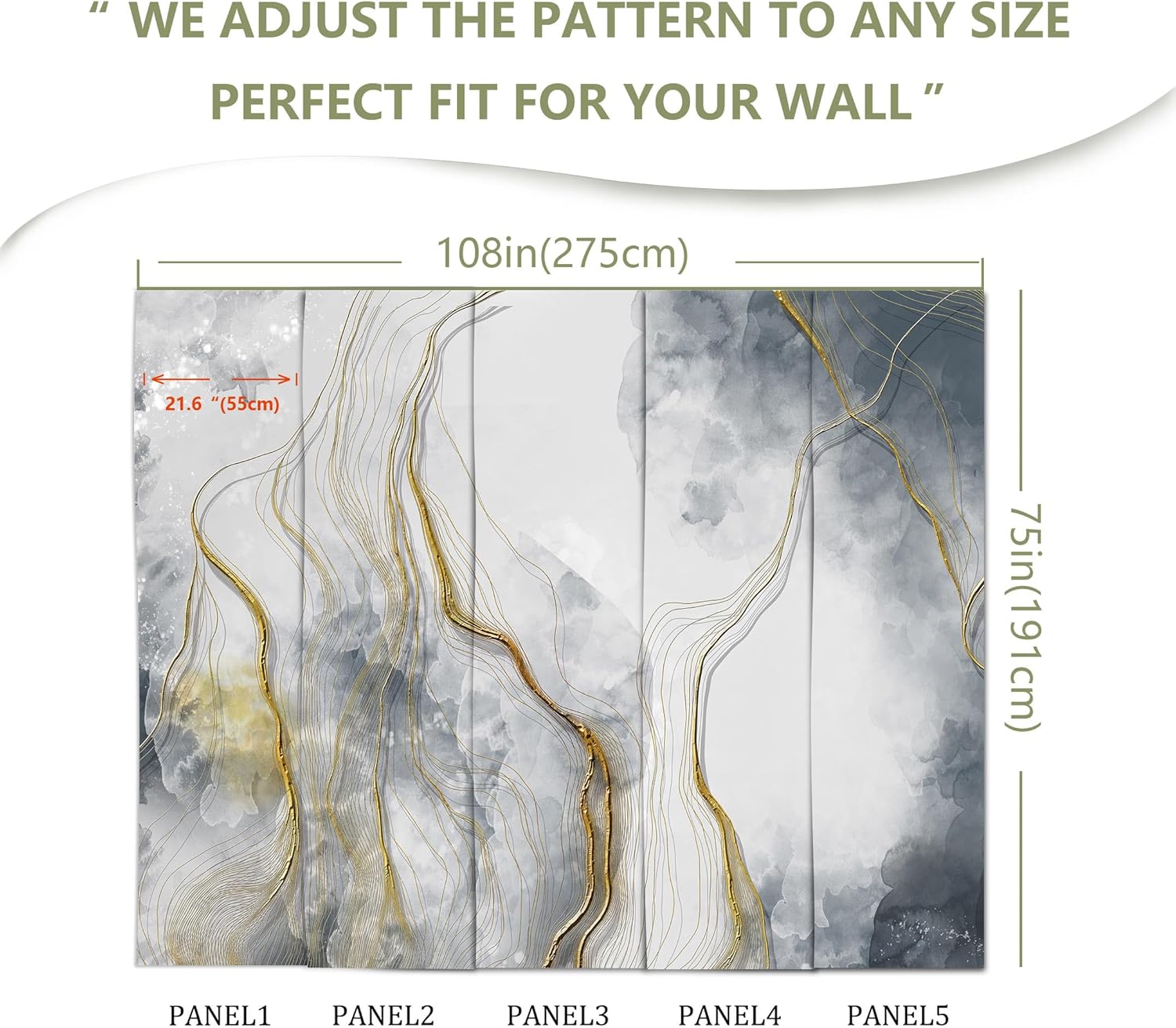 - MURAL SIZE - Approx.108"x75"(Wx H), This mural wallpaper cut into 5 strips. All is marked with number under each strip. You can put it in sequential order before you install it.