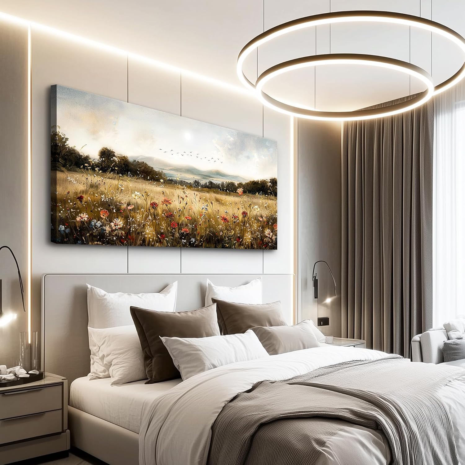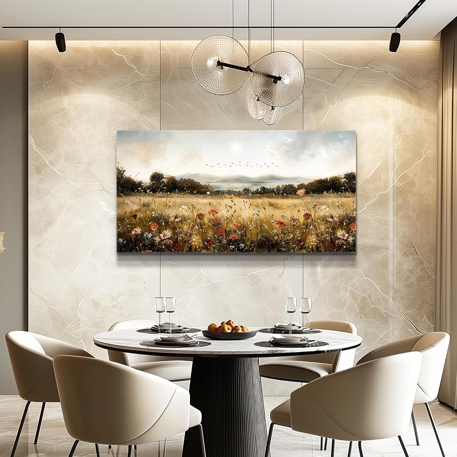 KELIYUAN Canvas Wall Art For Kitchen Dining Room Vintage Decor, Lawn Paintings With Flowers Wall Decor Prints Home Office Living Room Bedroom Decoration Home Decor, Can Be Hung Directly 20 "X 40"
