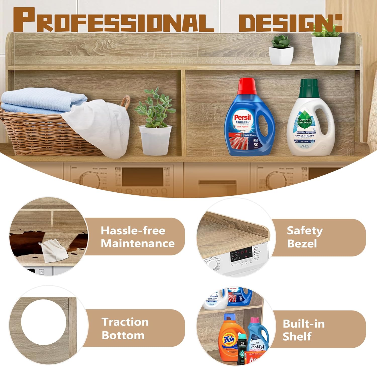 - 【Versatile and Efficient Storage Solution】Beyond serving as a base for your washer and dryer, this countertop offers exceptional storage capabilities. Its generous surface is perfect for organizing laundry essentials and functions as a convenient sorting station or even a temporary workspace. This versatile design adapts to your needs, making it an indispensable asset in your laundry room.