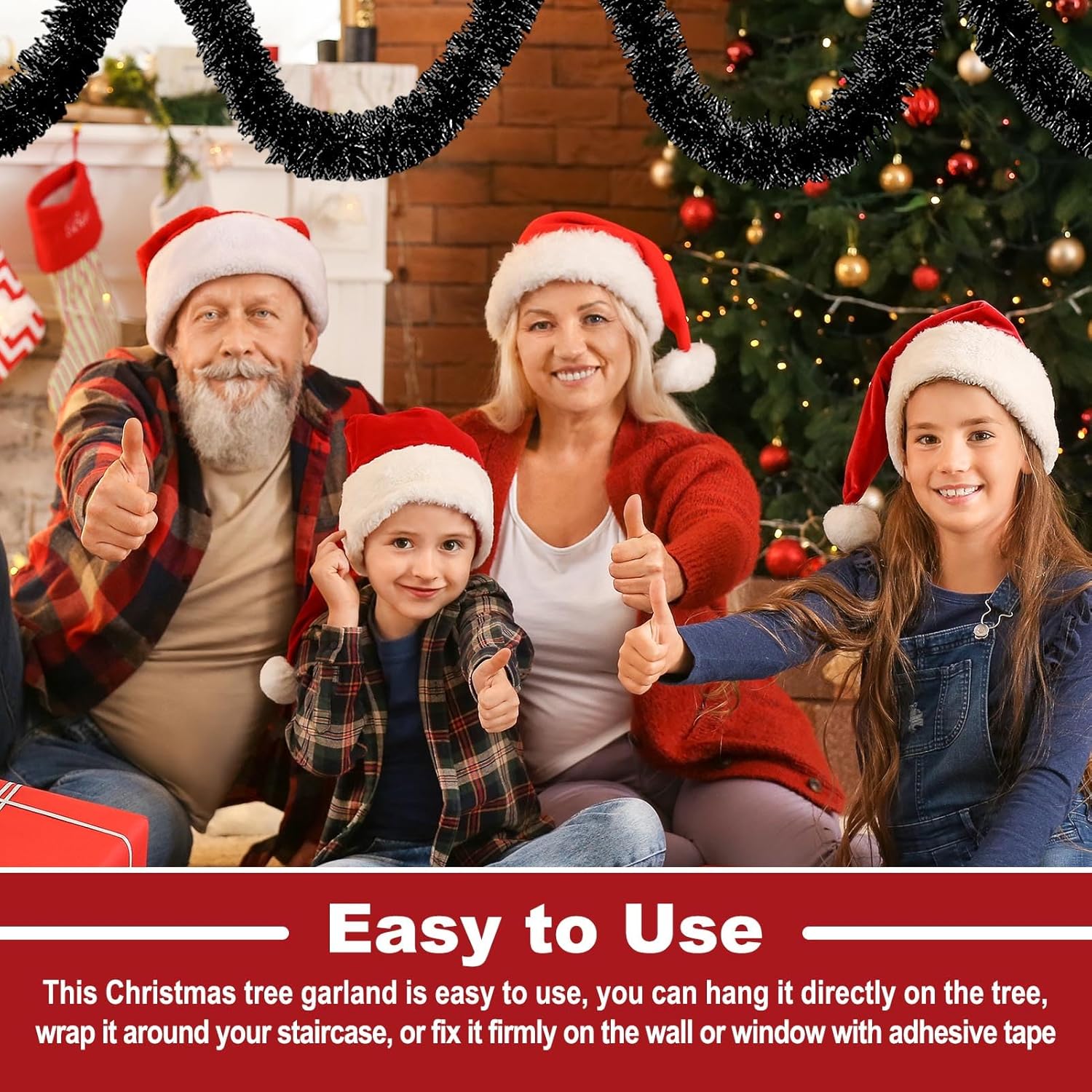 - Easy to Hang: Christmas tinsel garland include a soft, bendable wire inside, and easy to shape as different looks. You can also trim it into different sizes, twist them into various shapes as you like, or with the tape stick it on the wall, window, table, door, rail or any place you like, show the christmas glamour to make your party decoration for the home fun