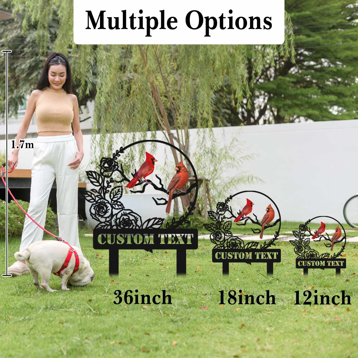 - Personalized Stake: Customize with a name or other wording to give to your family, friends or use to decorate your own yard. Cardinal stake look great outside, in the garden, on the patio, adding color to your outdoor space.