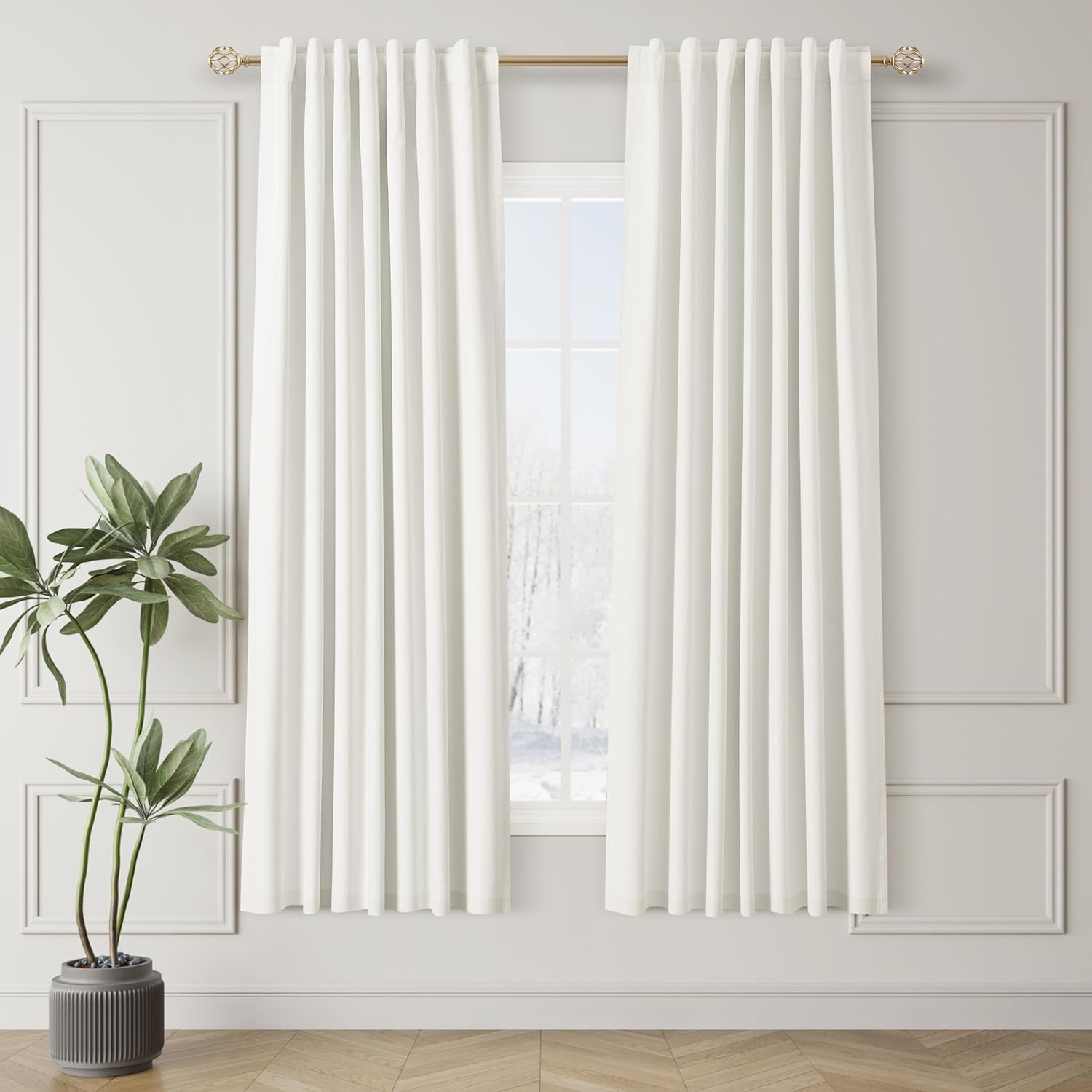 Ivory White Black Out Curtains 72 Inch Long for Bedroom Window Room Darkening Full Light Blocking Curtains Back Tab Neutral Elegant Off White Blackout Curtain Thermal Insulated Linen Drapes 52x72