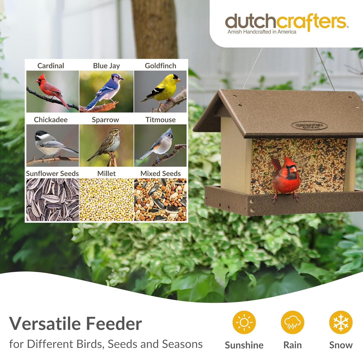 - Made in USA - Our poly bird feeder for outdoors is proudly made in America using high-quality materials. Each large bird feeder is carefully crafted by a skilled craftsman in Indiana. Our hopper bird feeders for outdoors embody our dedication to local craftsmanship and superior quality
