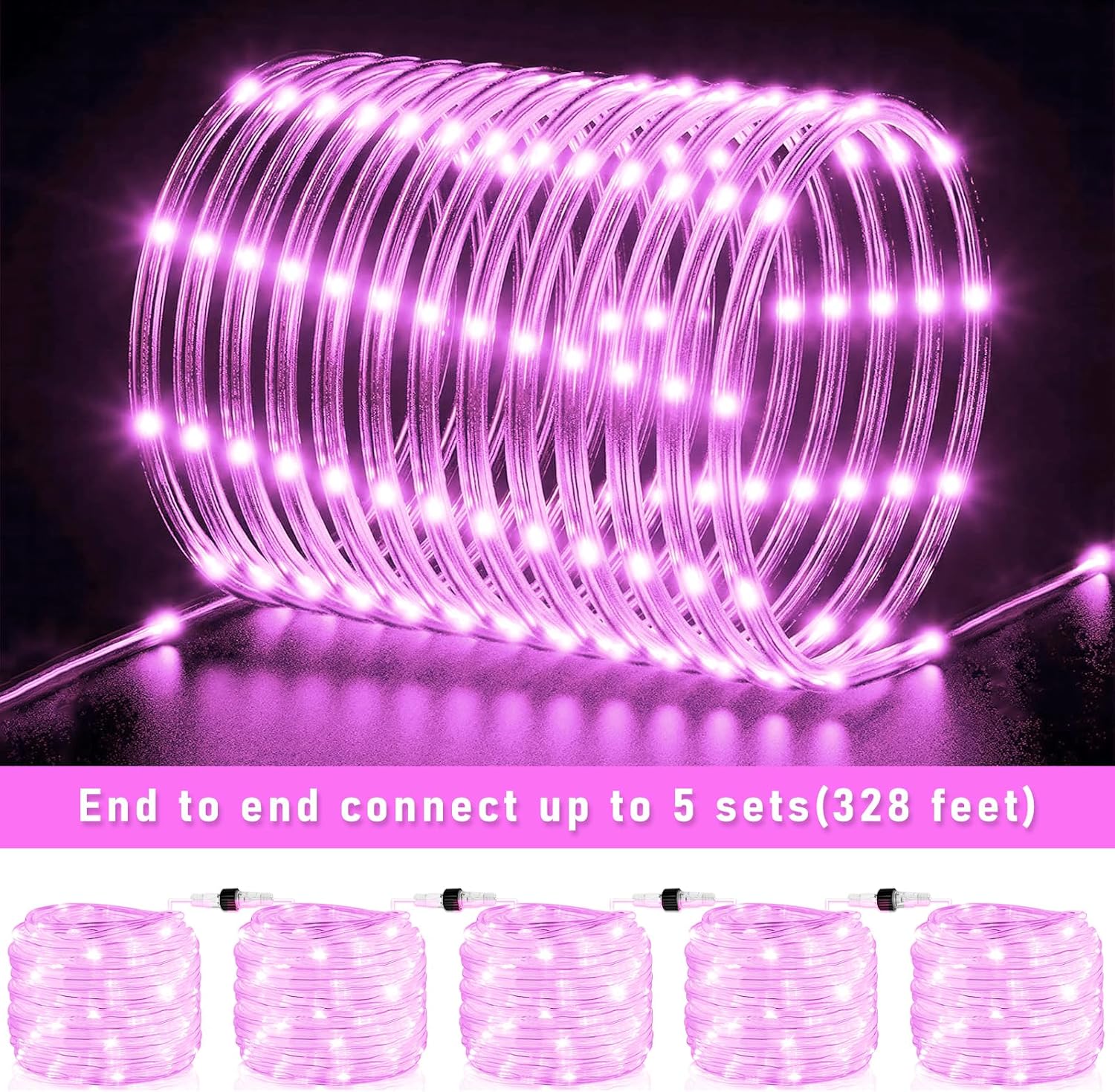- 【Connectable Rope Lights】- Our upgraded led rope lights feature has 66ft lighting length, 6.6ft lead wire, total 72.6ft length. And the spacing between each LED bead is 4 inches, the light is bright but not harsh. The rope lights indoor can be connected end to end up to 5 sets to illuminate your home and create a warm and romantic atmosphere!