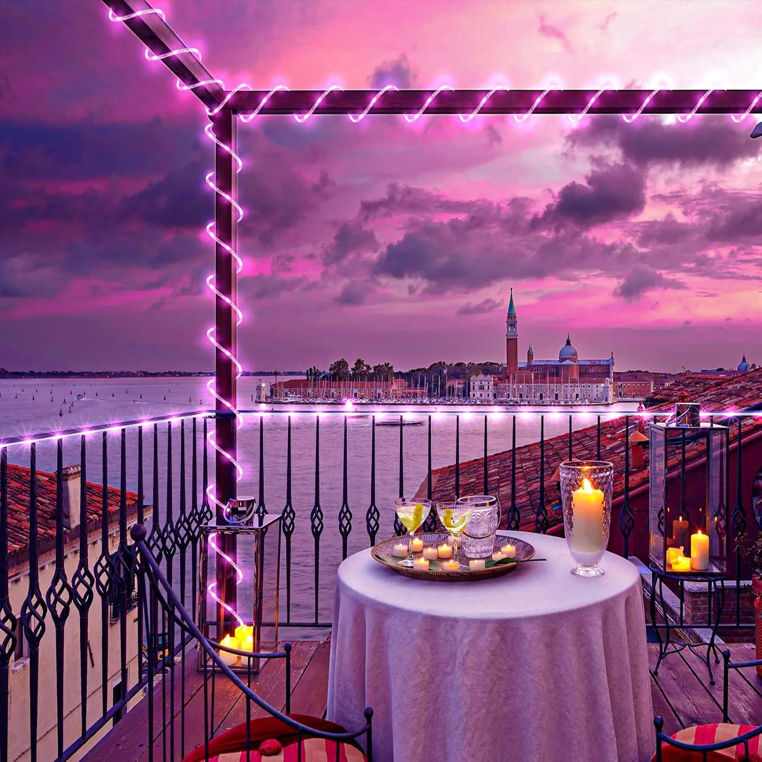 - 【Waterproof Outdoor String Lights】- IP65 Waterproof design, they are suitable for all weather use, remaining bright and sparkling even during strong rain and windy days. The outdoor rope lights is ideal for year-round outdoor decor and can illuminate gazebos, canopy, corridors, gardens, and patios. But please note the plug is not waterproof.