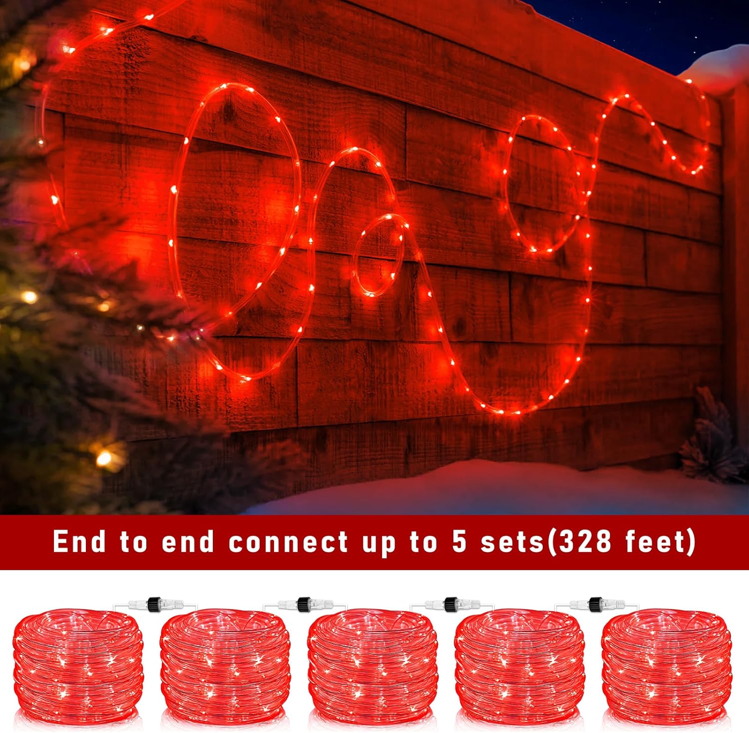 - 【Safe and Reliable】- The Christmas lights outdoor is covered with a transparent and thick PVC tubes that allows full 360° all-round lighting, delivering a full and even lighting experience. Plus, the led rope lights feature a 30V low-voltage power adapter, it won't overheat for a long time