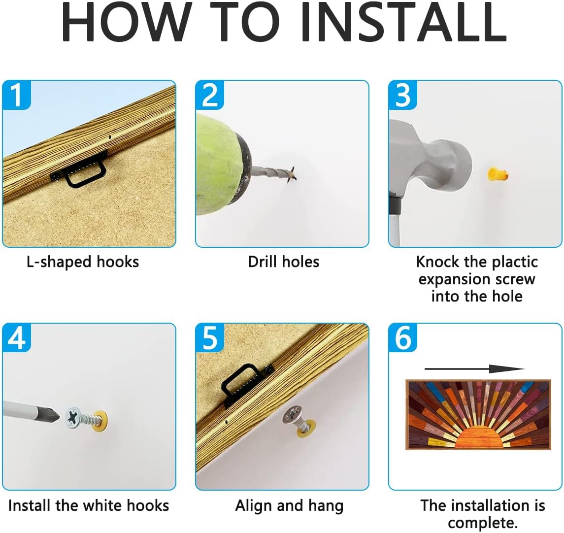 - 【Size for Easy Displaying】This boho sun artwork wall decor 3d wood sun wall art decor sunshine wall art is about 20*40 inches (50*100 cm). Two hooks are installed on the back of the minimalist wood wall decor, and the box package is equipped with screws. So you can easily hang the mid century modren wood wall art, very easy to operate.