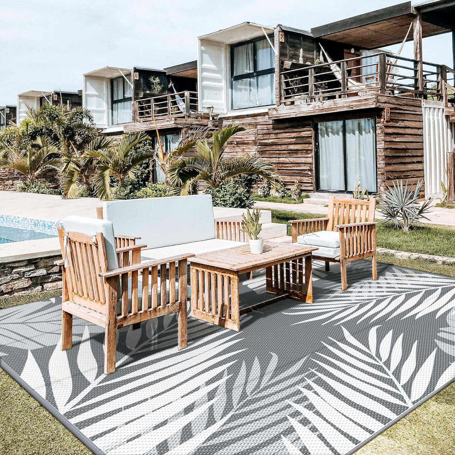 - Palm Leaf Design & Double-Sided Pattern: GENIMO reversible fall outdoor rug is designed with a double-sided pattern, completing the unique layout of multiple palm leaves. The 2 shades of grey and white achieve the ultimate fusion. Either side can blend perfectly with nature and look very full and comfortable, making it a versatile piece for fall decor